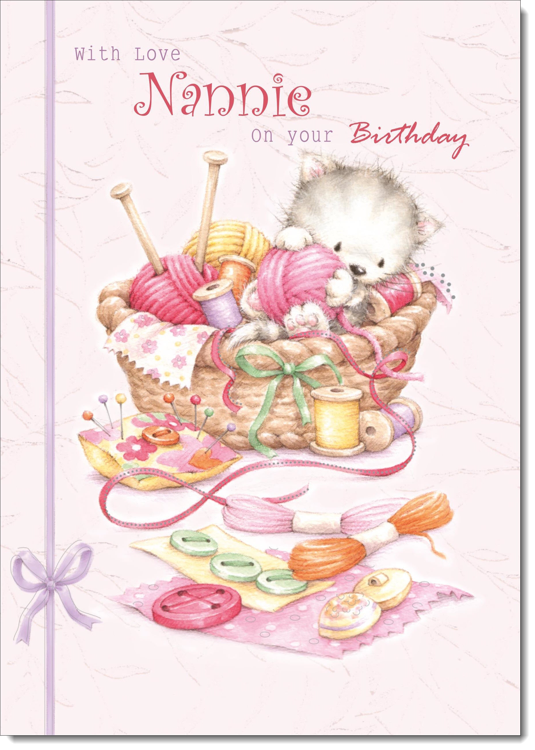 Nannie Birthday Card Kitten in Sewing Basket