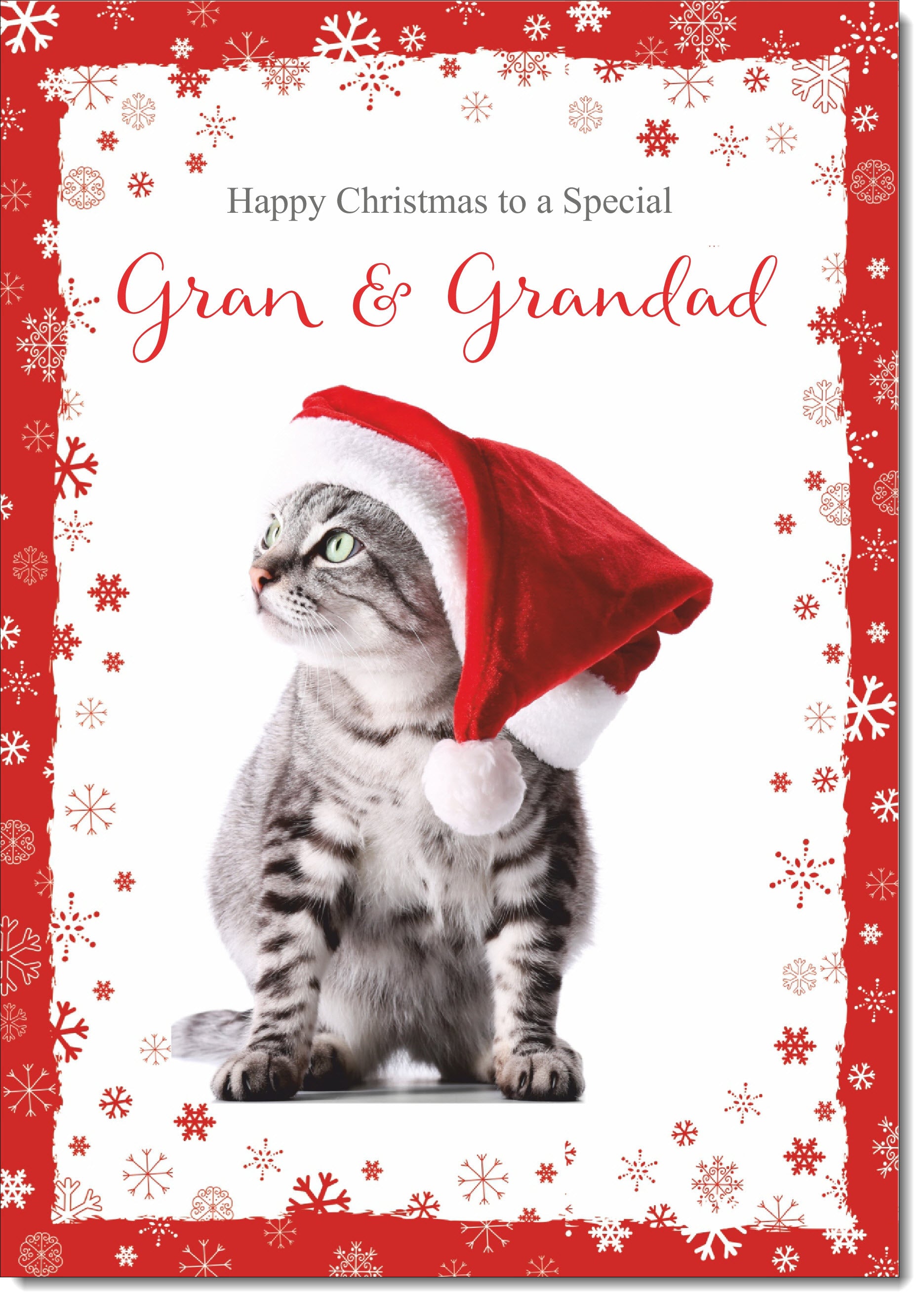 Gran & Grandad Christmas Card Cat with Santa Hat