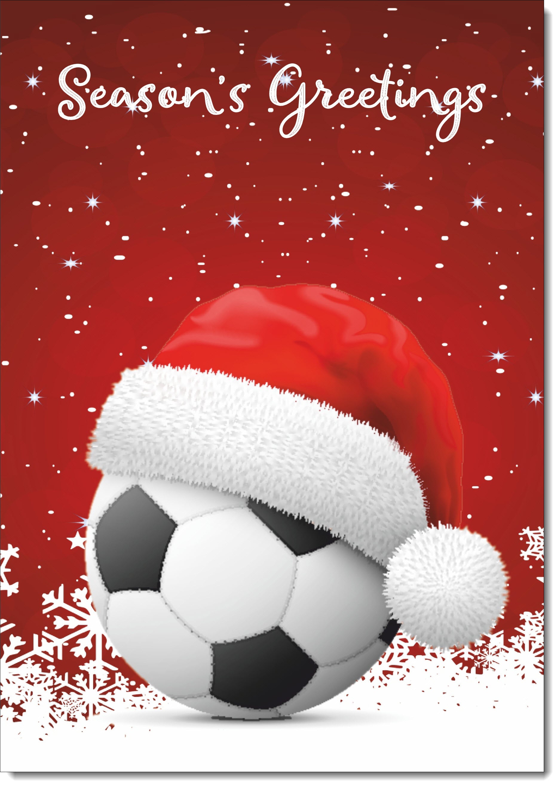 Seasons Greetings Christmas Card Santa Hat Football with Red Sky