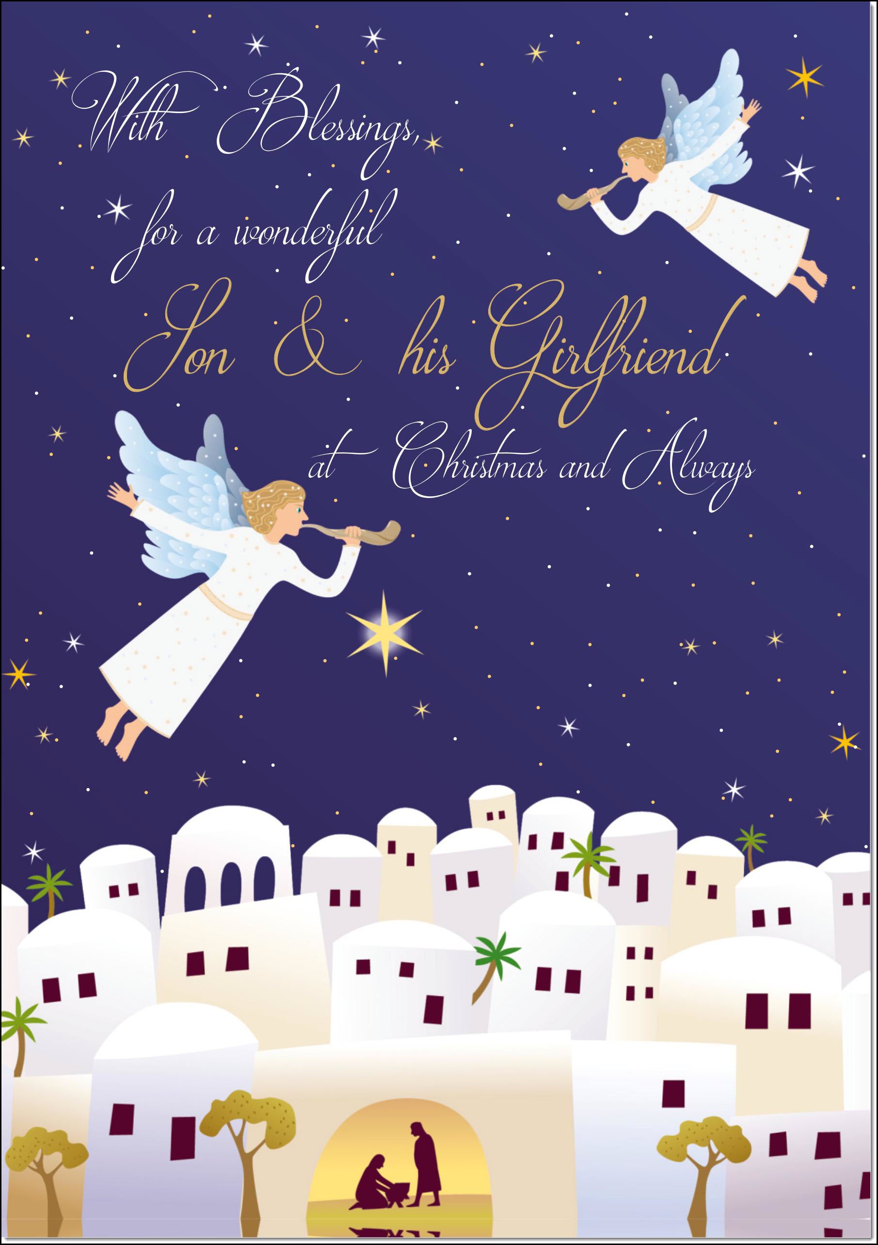 Son & Girlfriend Christmas Card Nativity Scene Angels Bethlehem
