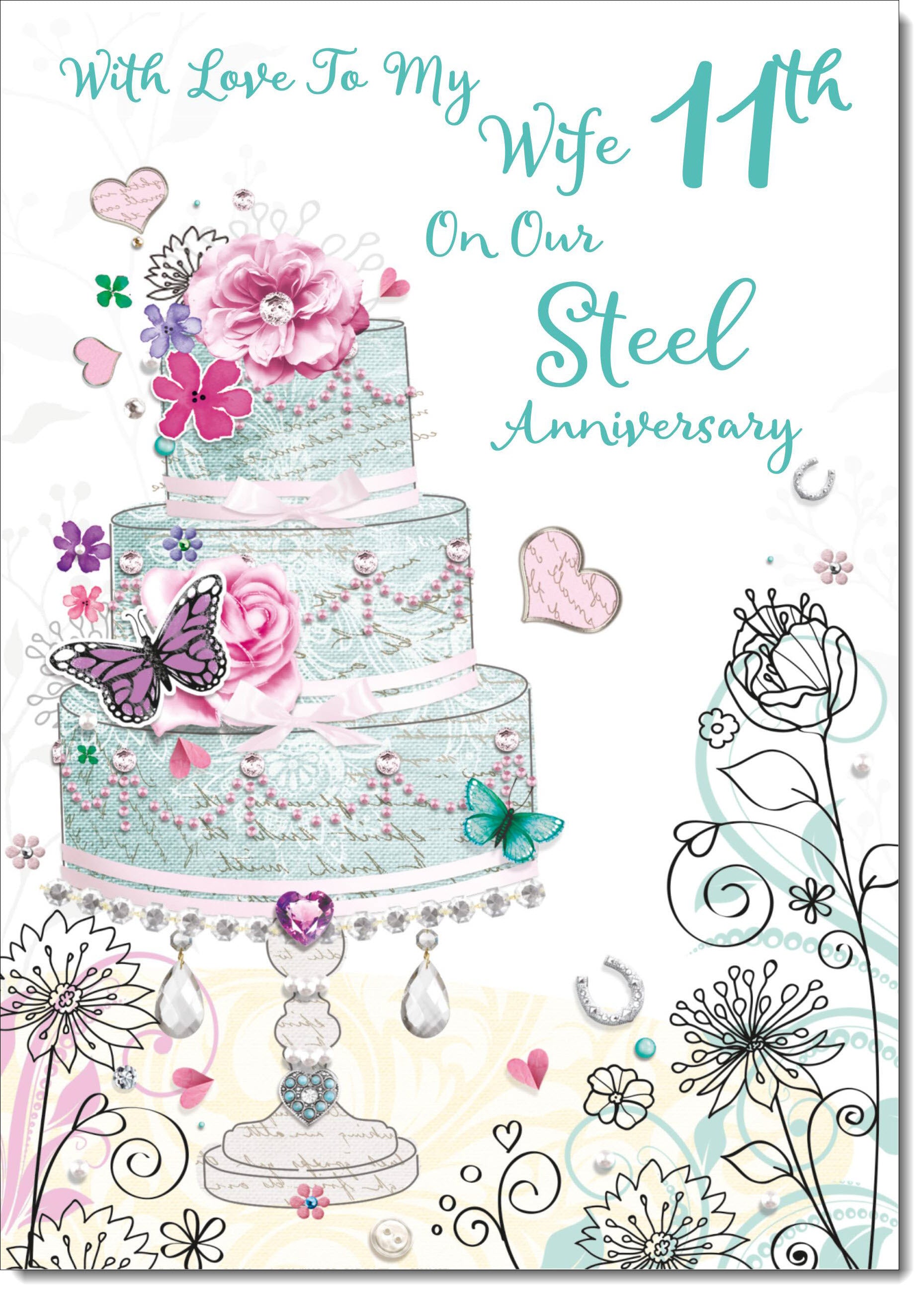 Wife Steel 11th Wedding Anniversary Card Wedding Cake