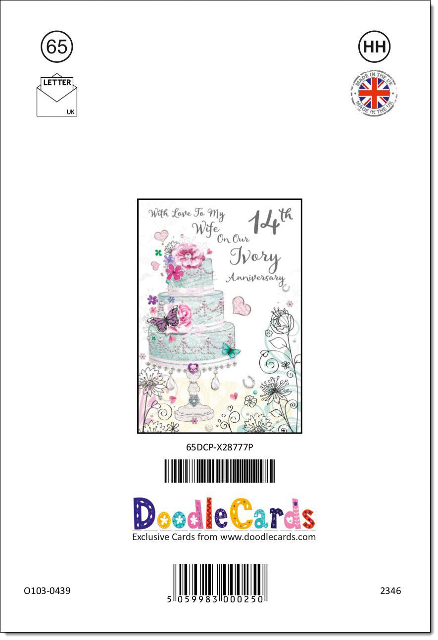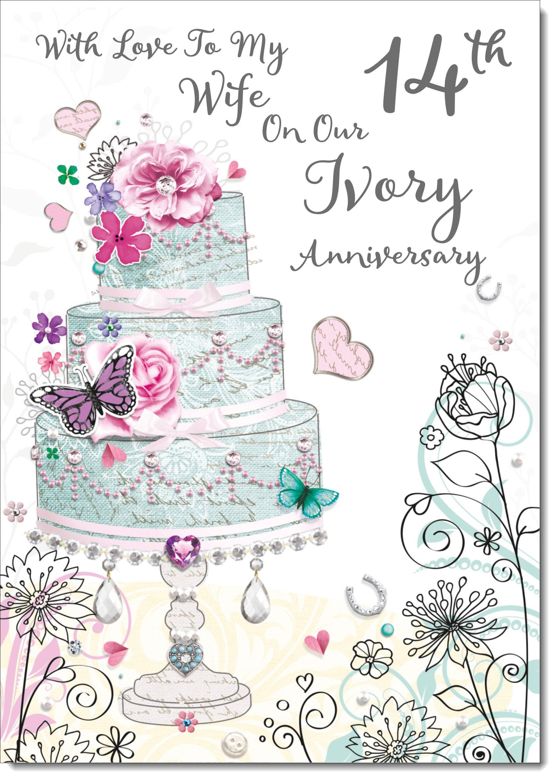Wife Ivory 14th Wedding Anniversary Card Wedding Cake