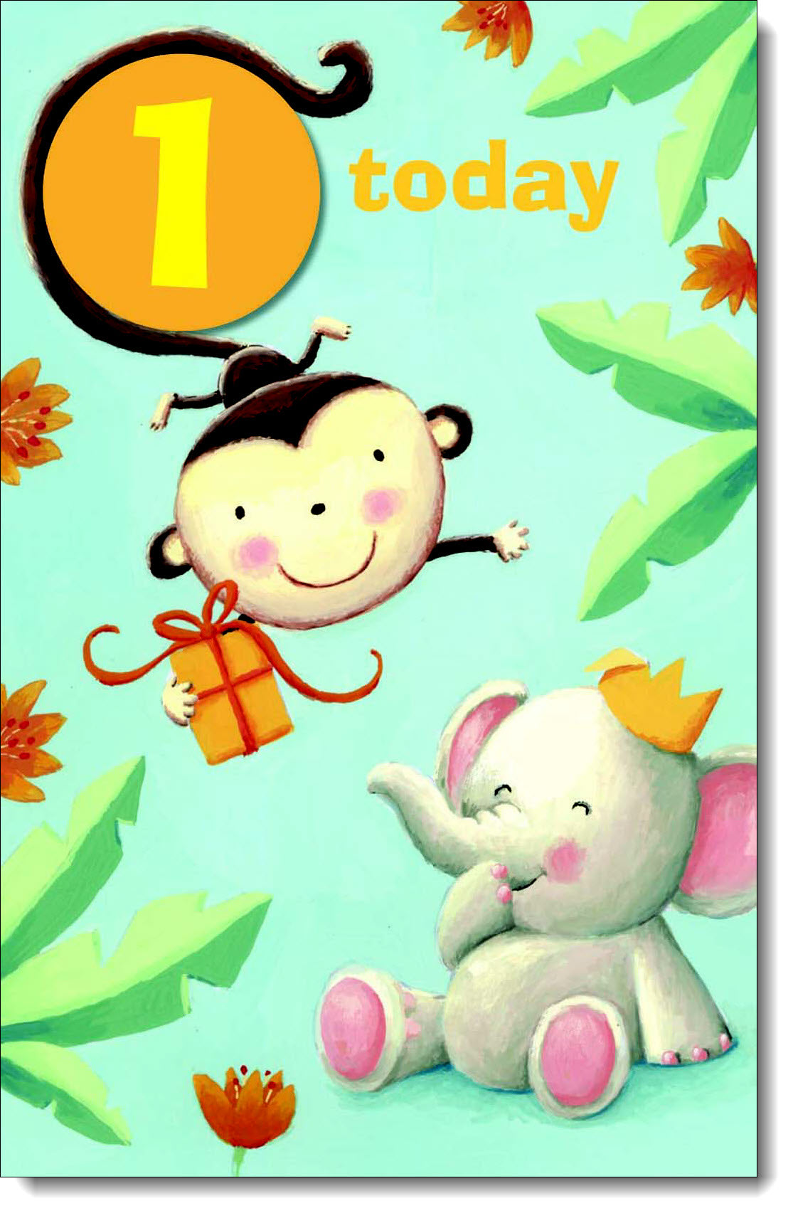 1st Birthday Card Age 1 for Boy Monkey in the Jungle