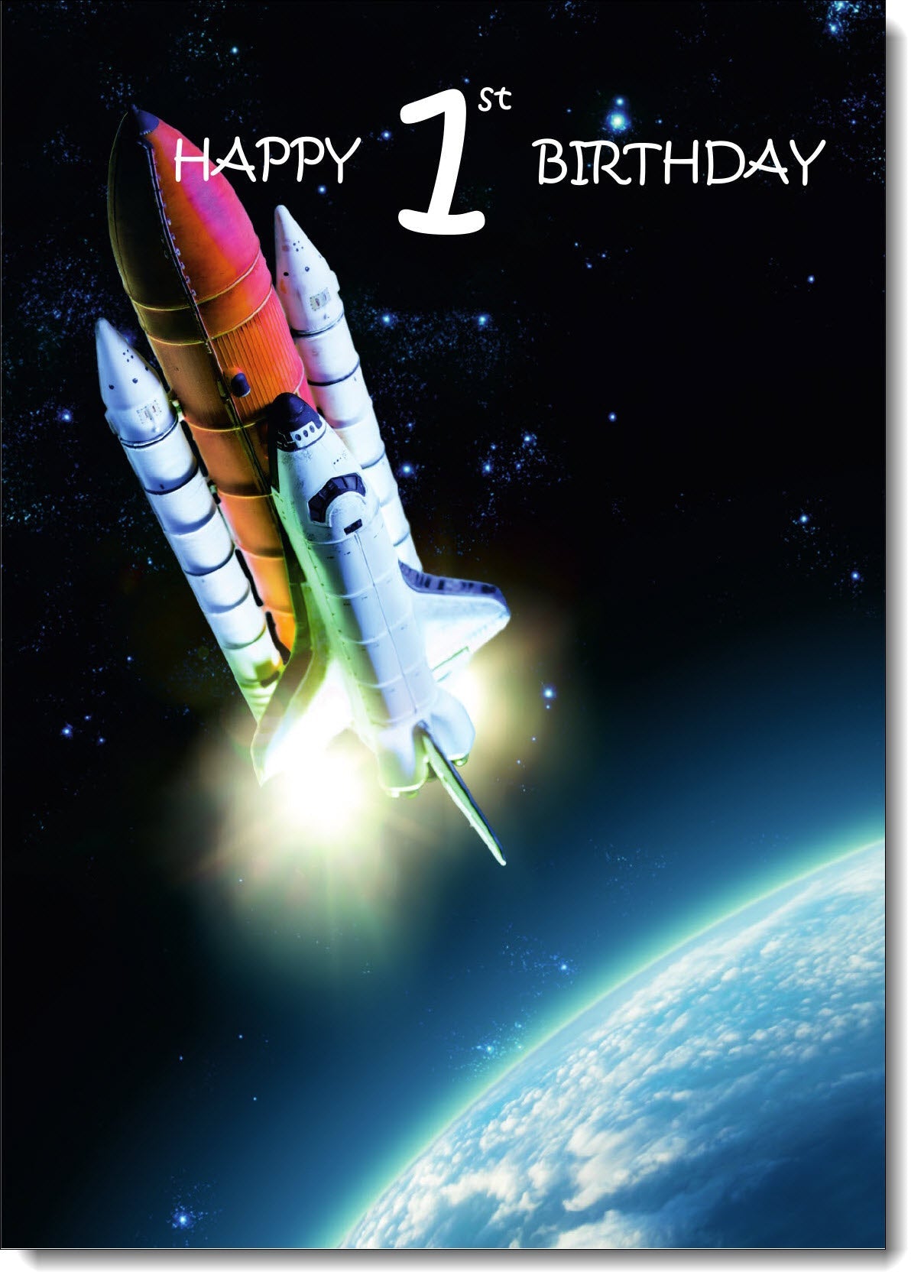 1st Birthday Card Age 1 for Boy Rocket Ship in Space