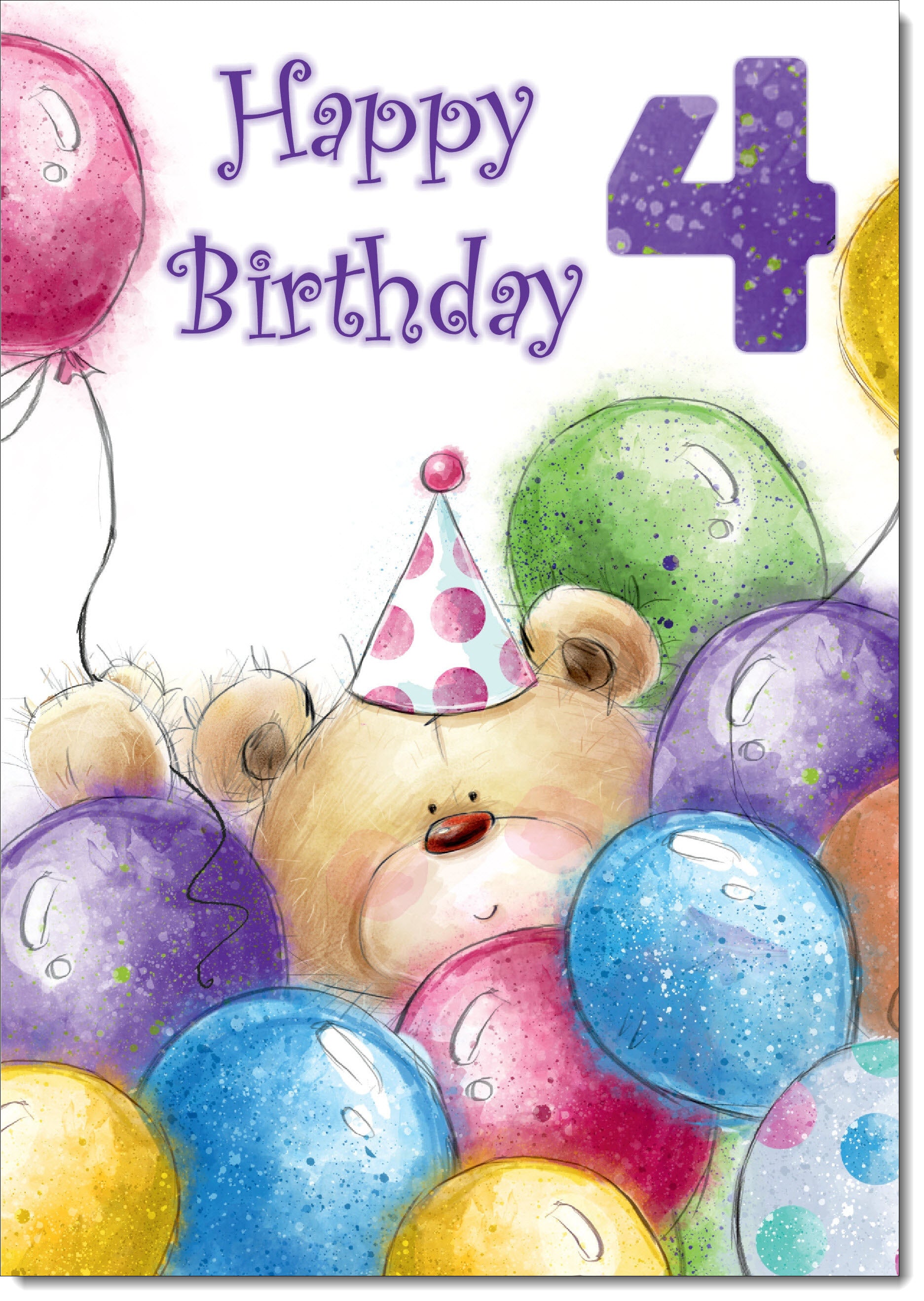 4th Birthday Card Age 4 Cute Teddy Bear in Balloons
