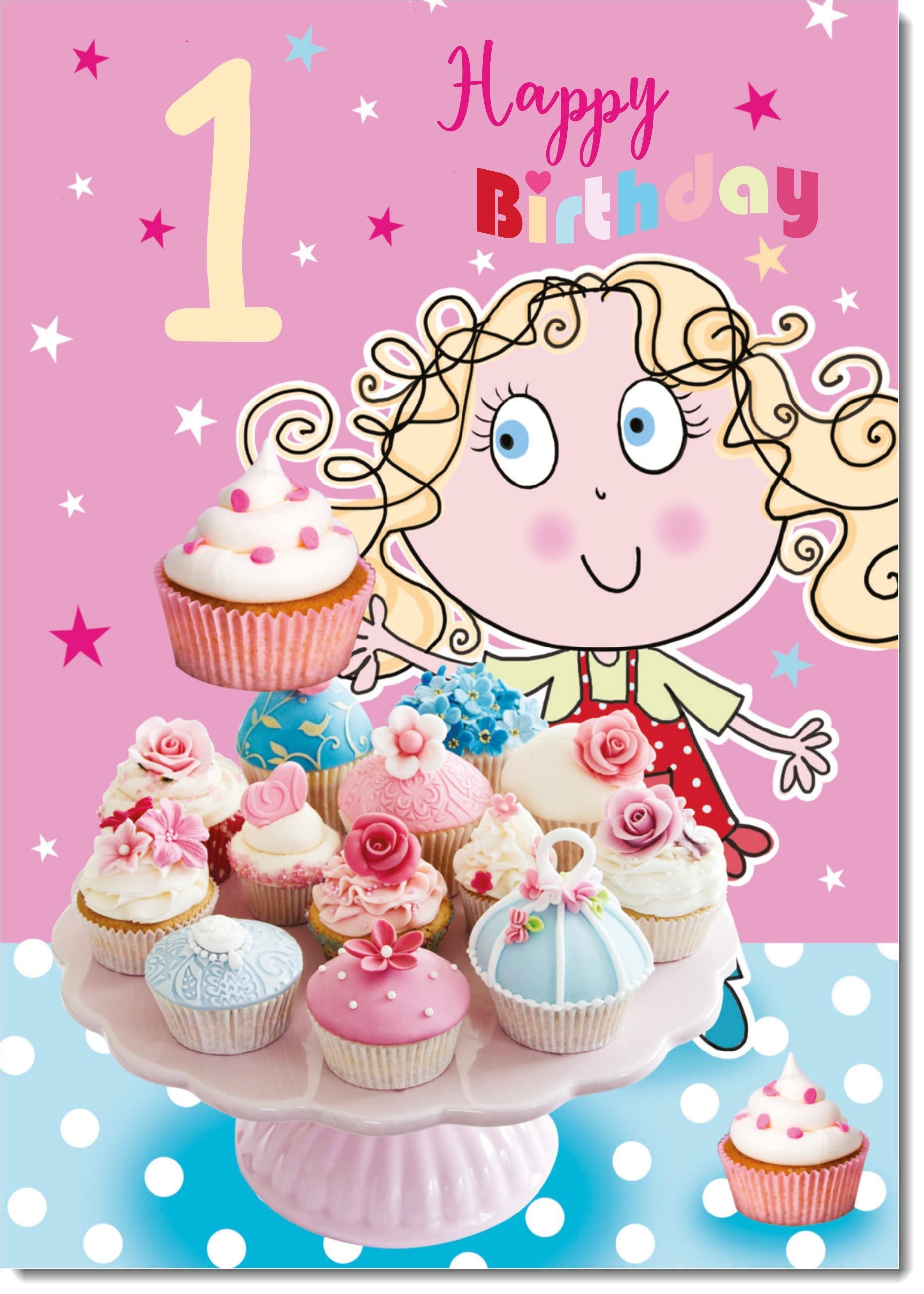 1st Birthday Card Age 1 for Girl Cupcakes