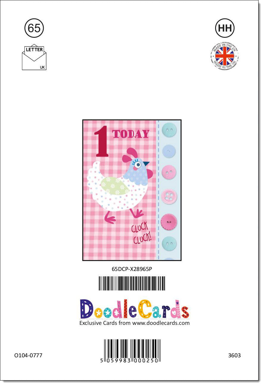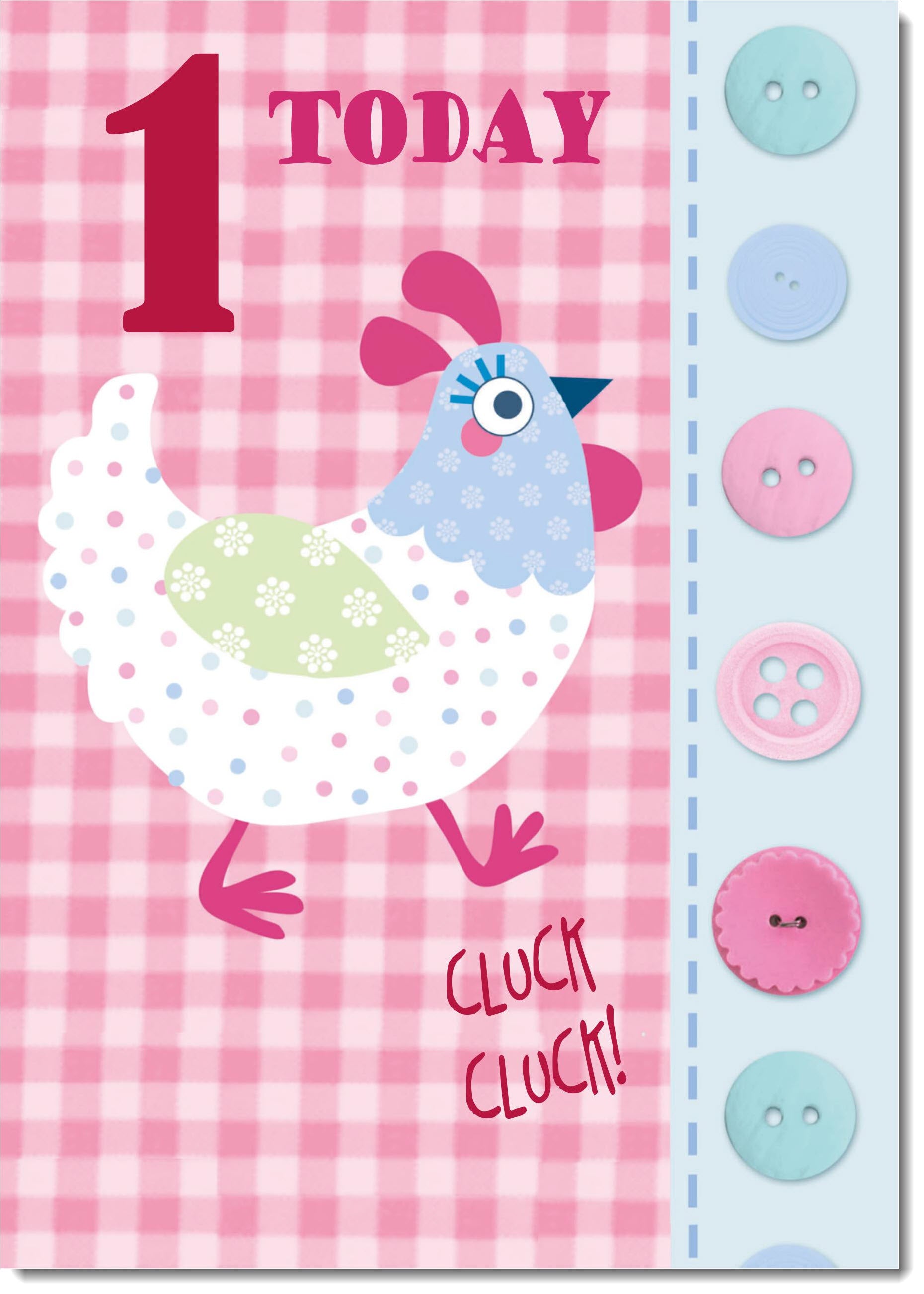 1st Birthday Card Age 1 for Girl Colourful Chicken