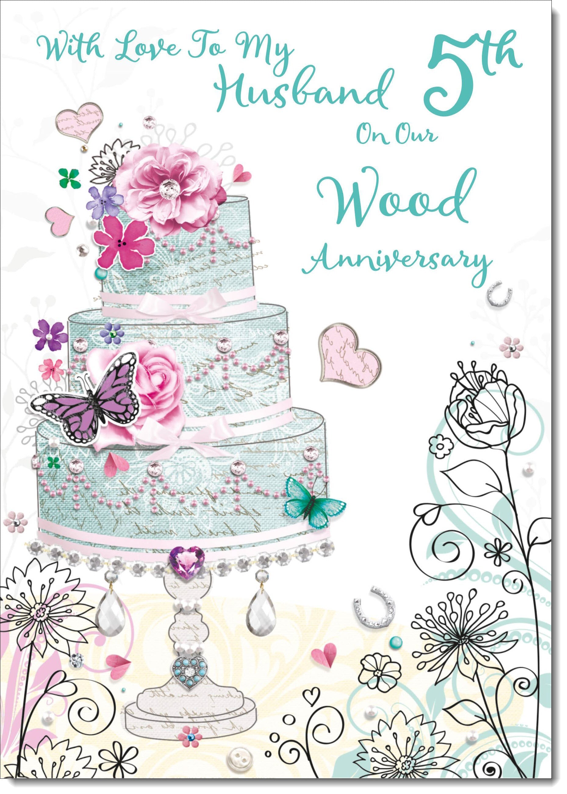 Husband Wood 5th Wedding Anniversary Card Wedding Cake