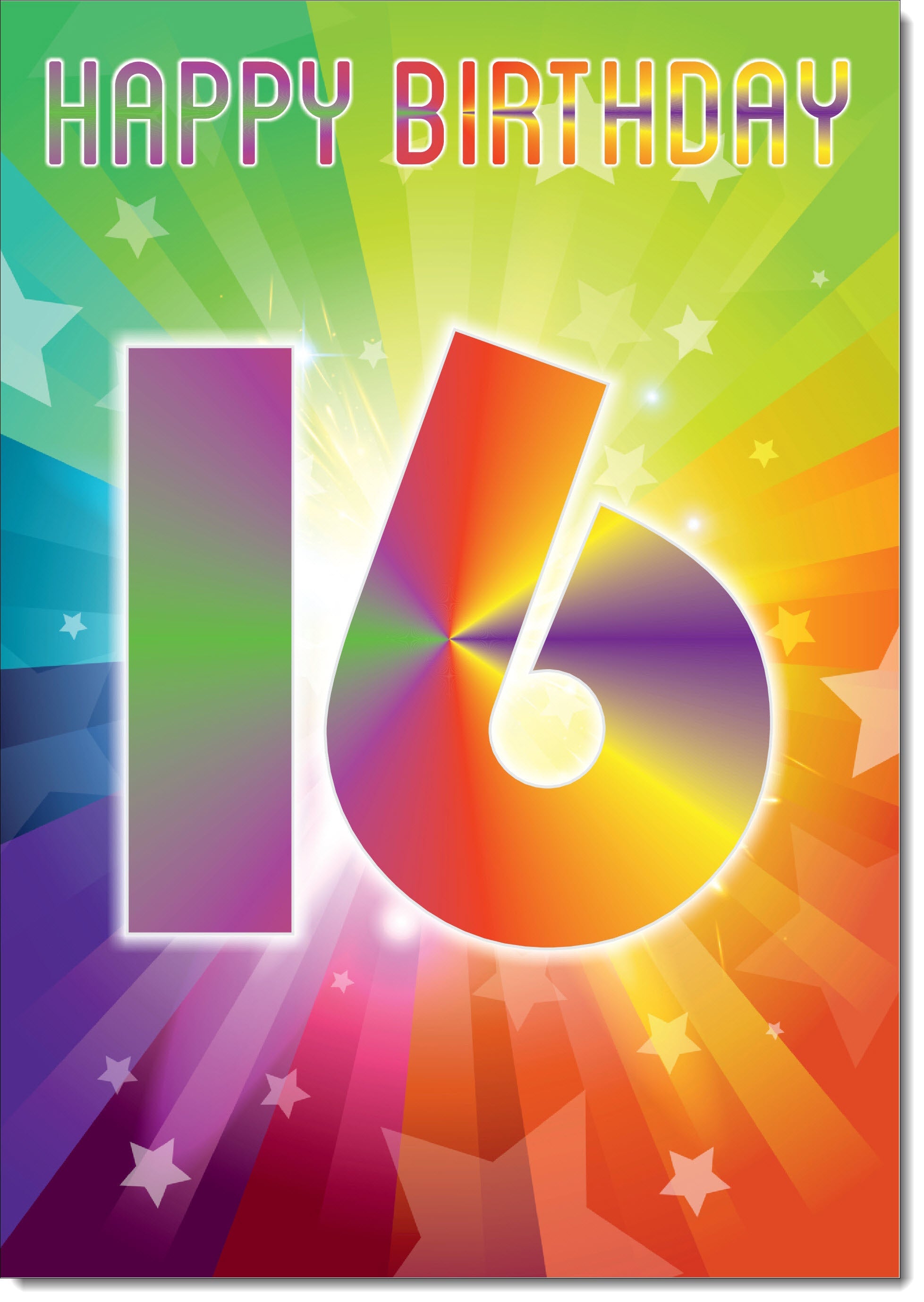 16th Birthday Card Age 16 for Him Rainbow Explosion