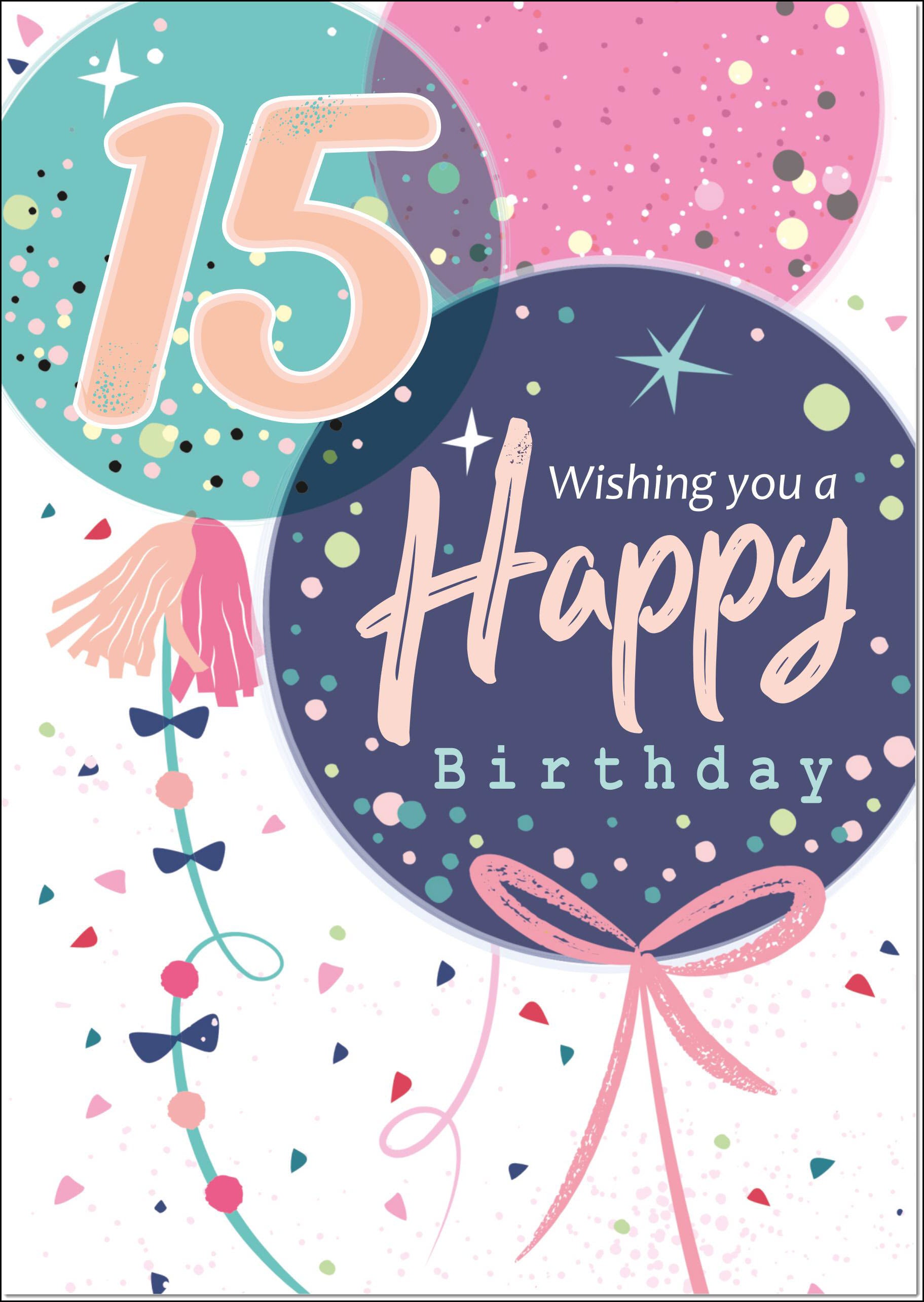 15th Birthday Card Age 15 for Girl Confetti Happy Birthday Balloons