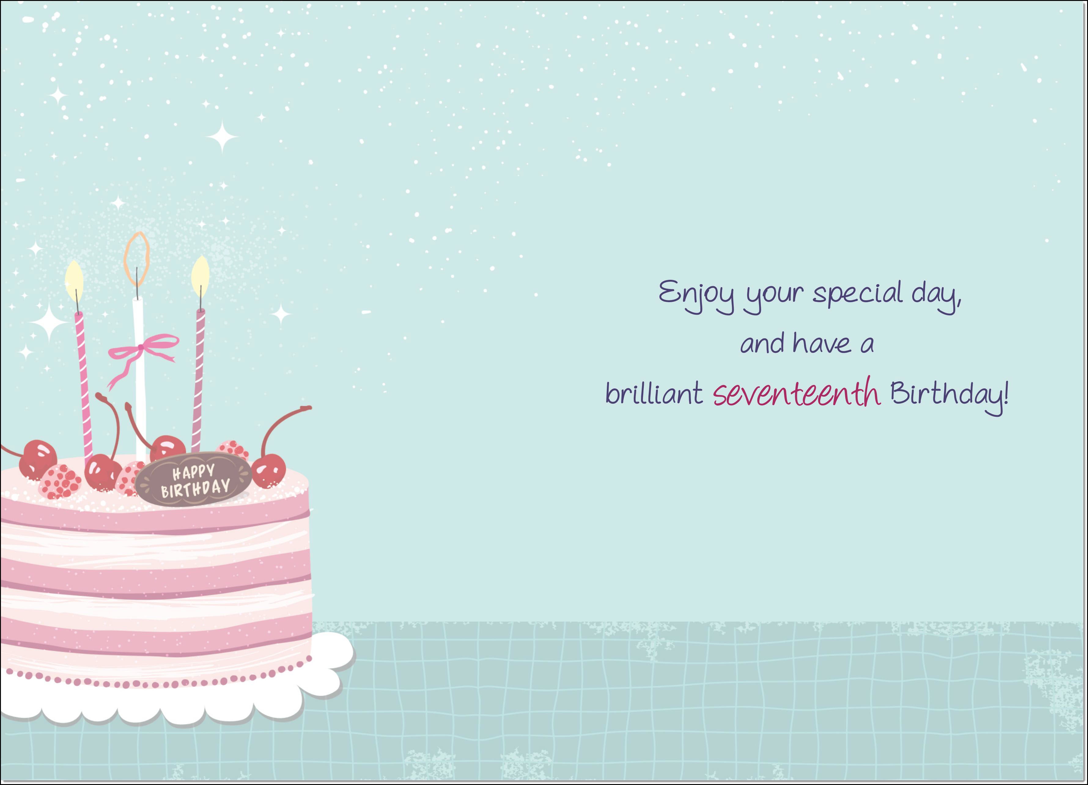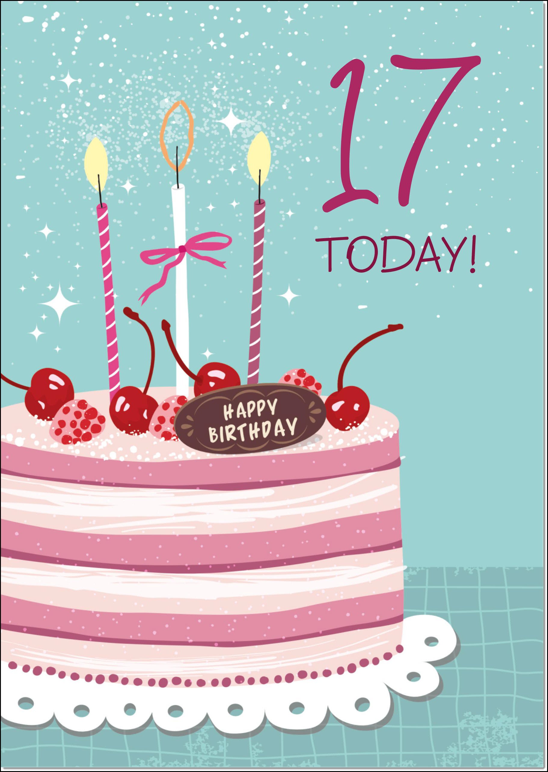 17th Birthday Card Age 17 for Her Cherry Birthday Cake and Candles