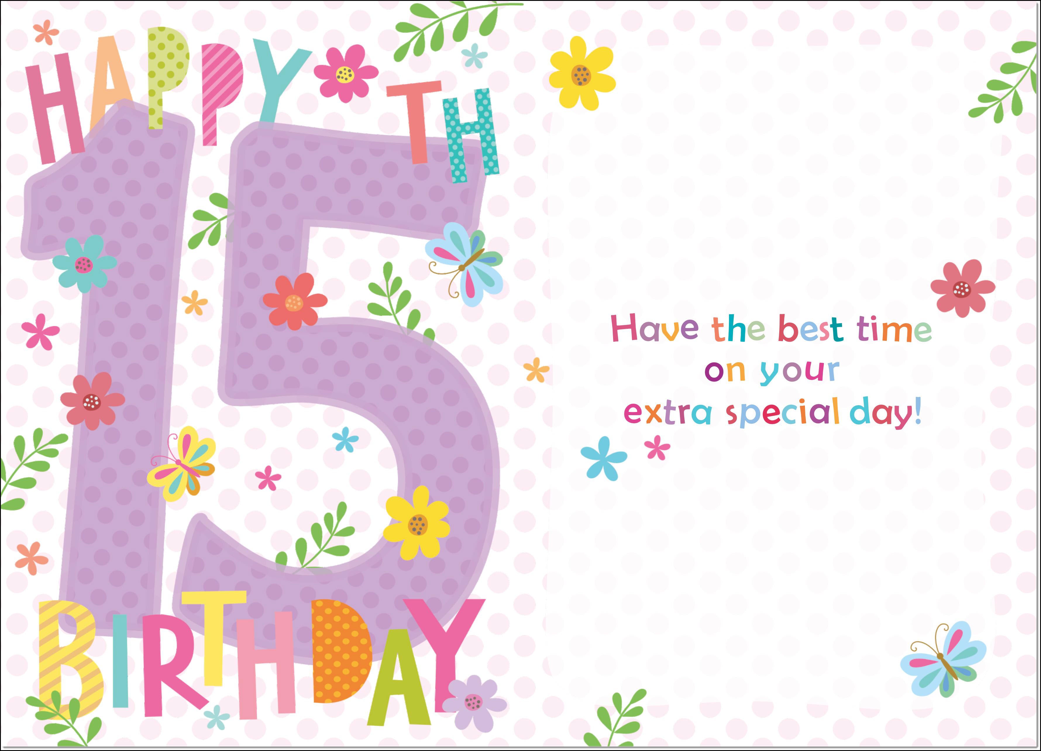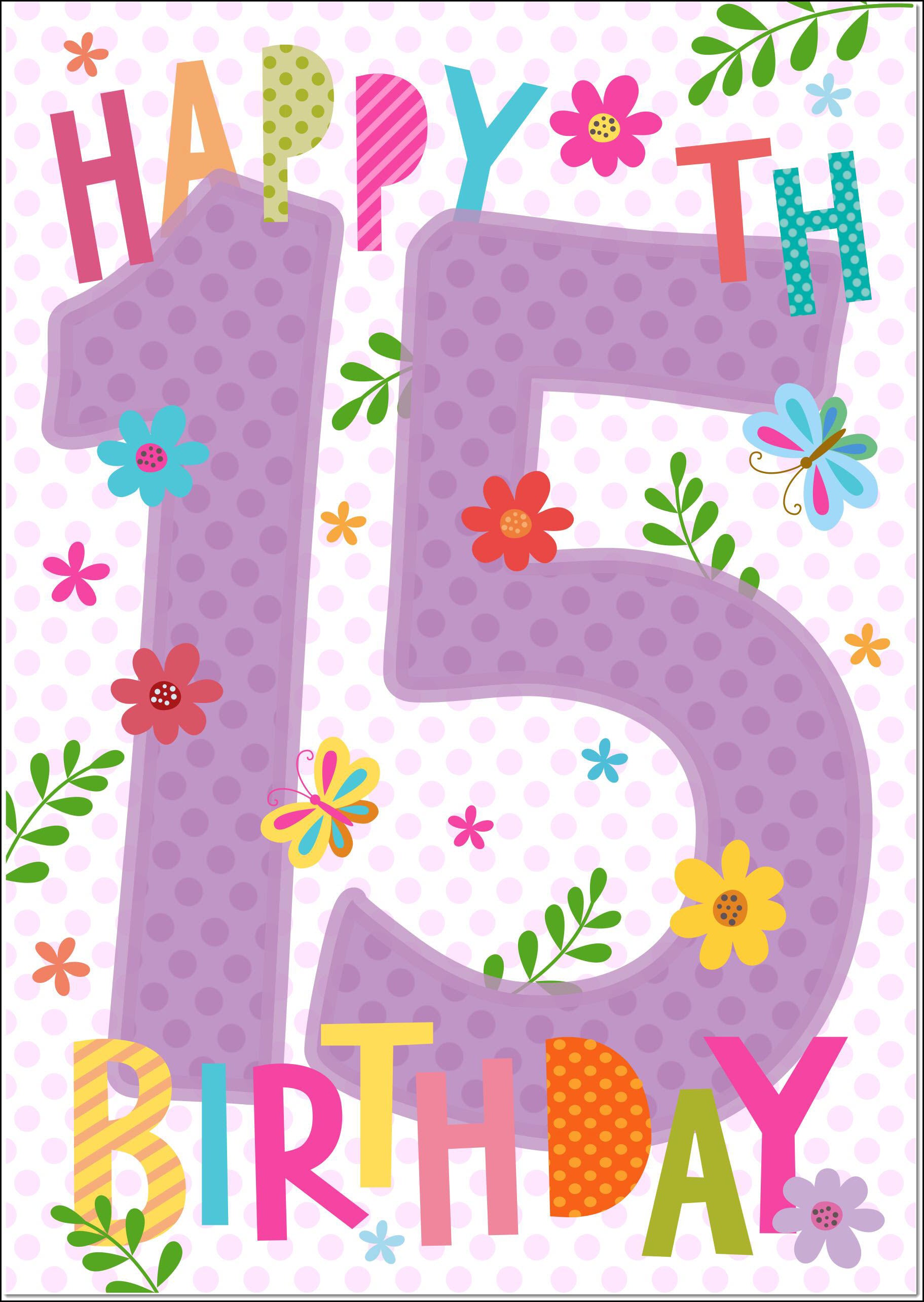 15th Birthday Card Age 15 for Girl Floral Numbers