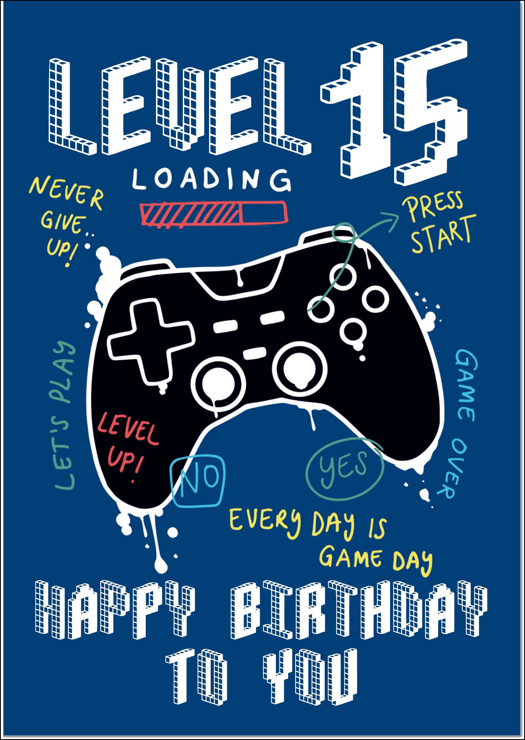 15th Birthday Card Age 15 for Boy Level Up Gaming Console