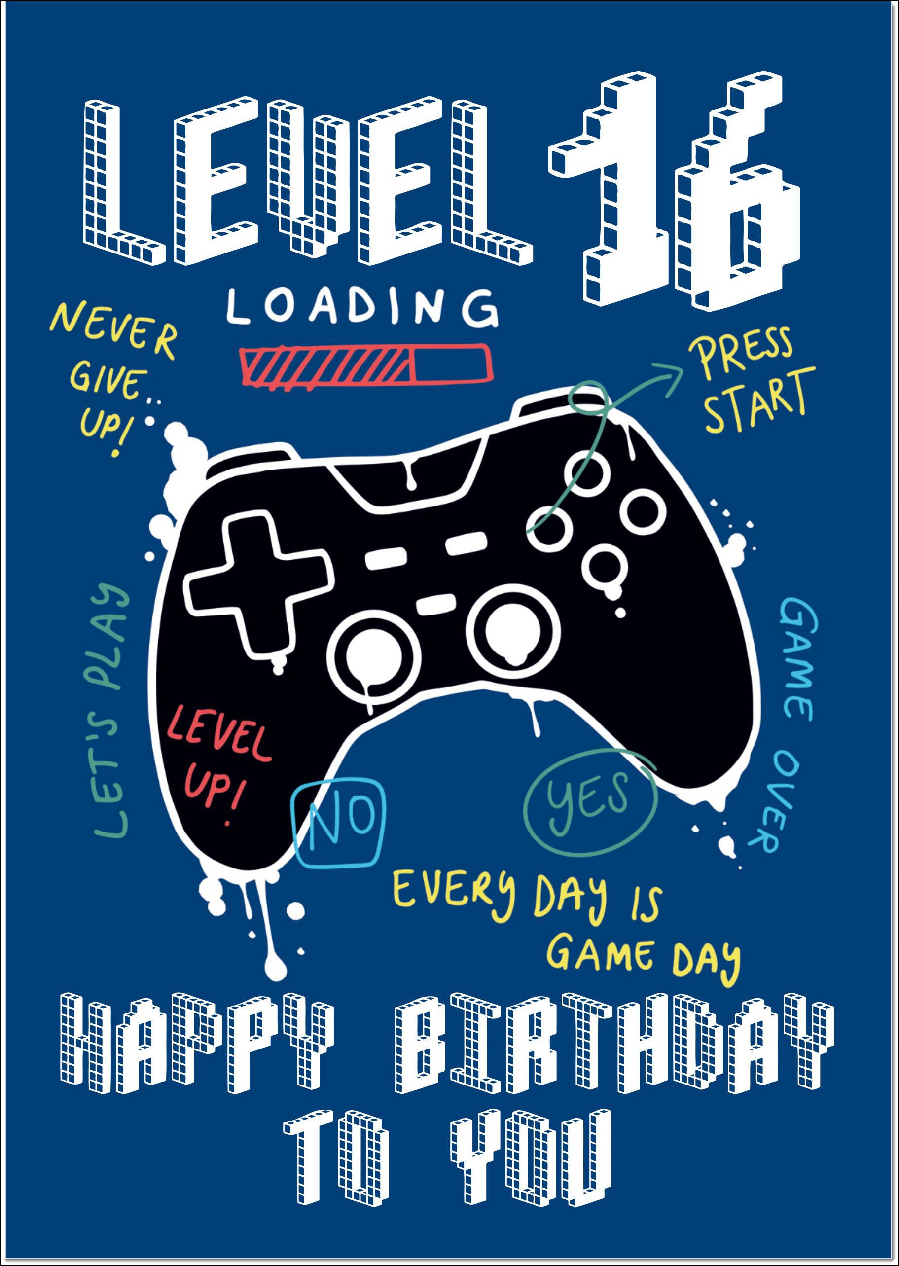 16th Birthday Card Age 16 for Him Level Up Gaming Console