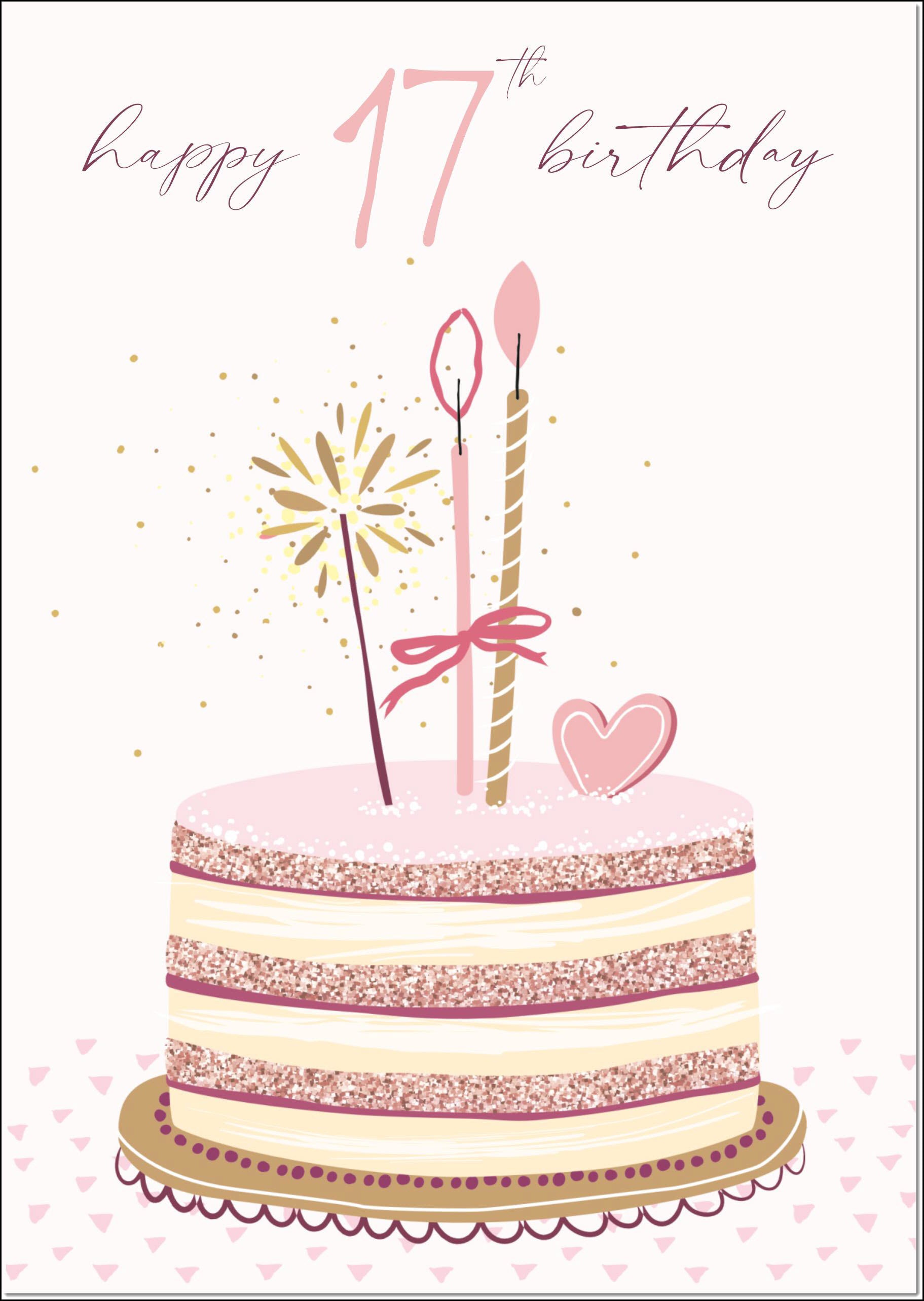 17th Birthday Card Age 17 for Her Pastel Pink Birthday Cake