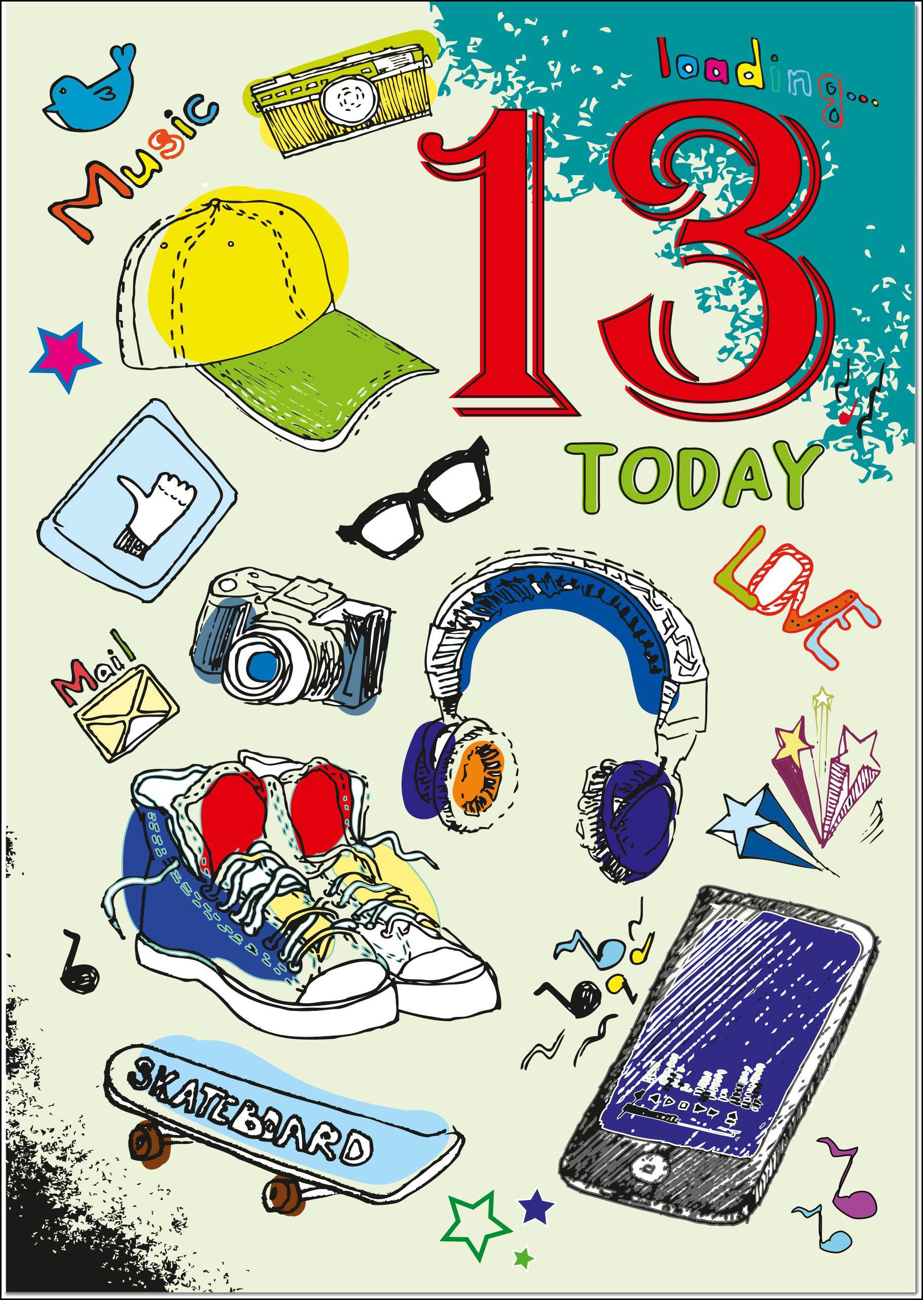 13th Birthday Card Age 13 for Boy Funky Icons