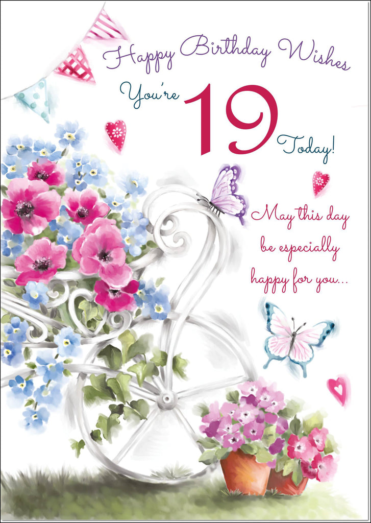 19th Birthday Card Age 19 for Her Confetti Happy Birthday Balloons