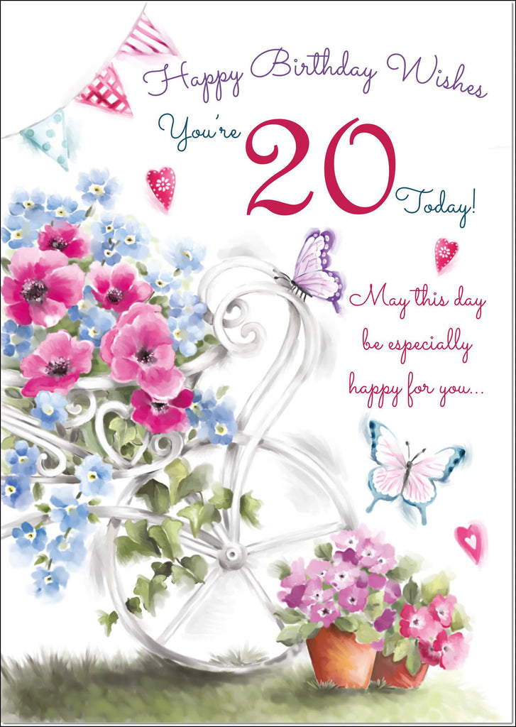 20th Birthday Card Age 20 for Her Confetti Happy Birthday Balloons