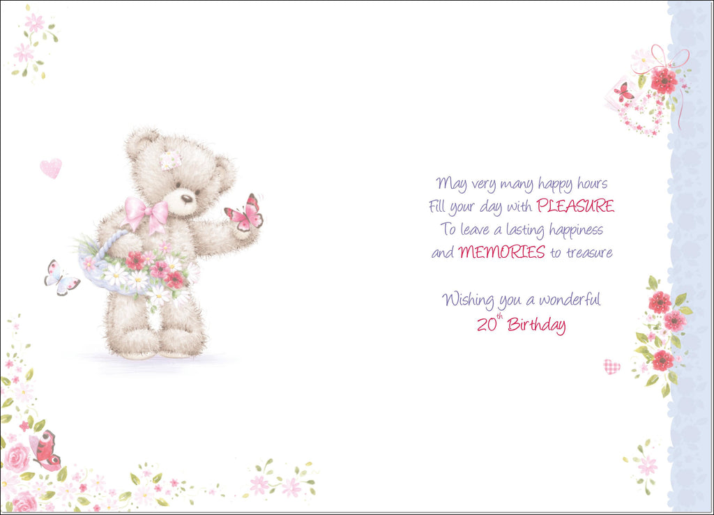18th Birthday Card Age 18 for Her Cute Teddy's Flowers and Butterflies