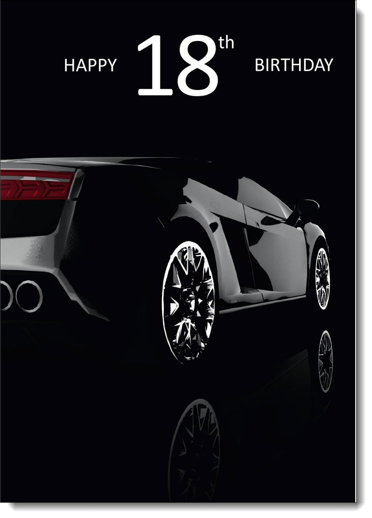 18th Birthday Card Age 18 for Him Black Lamborghini