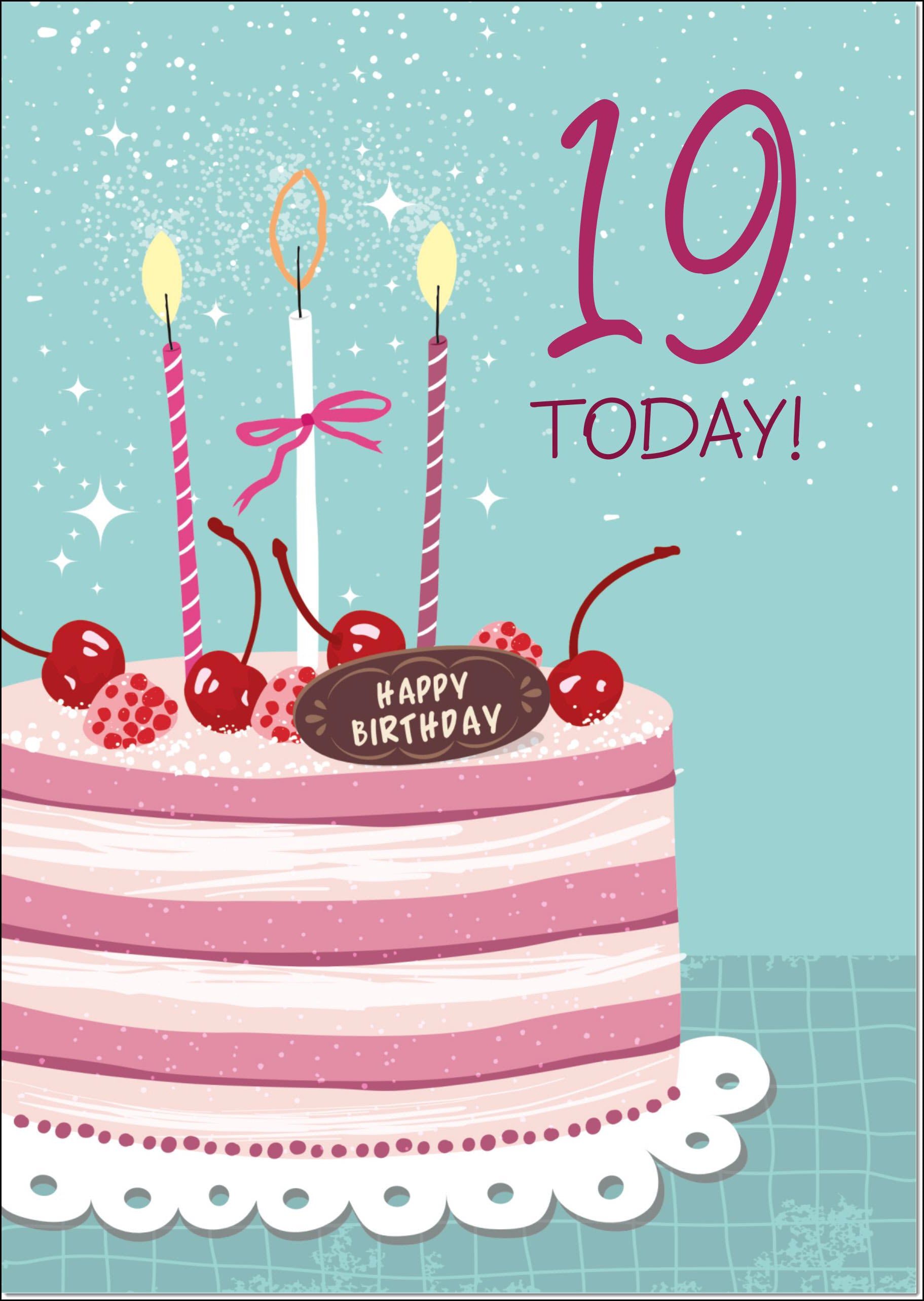 19th Birthday Card Age 19 for Her Cherry Birthday Cake and Candles