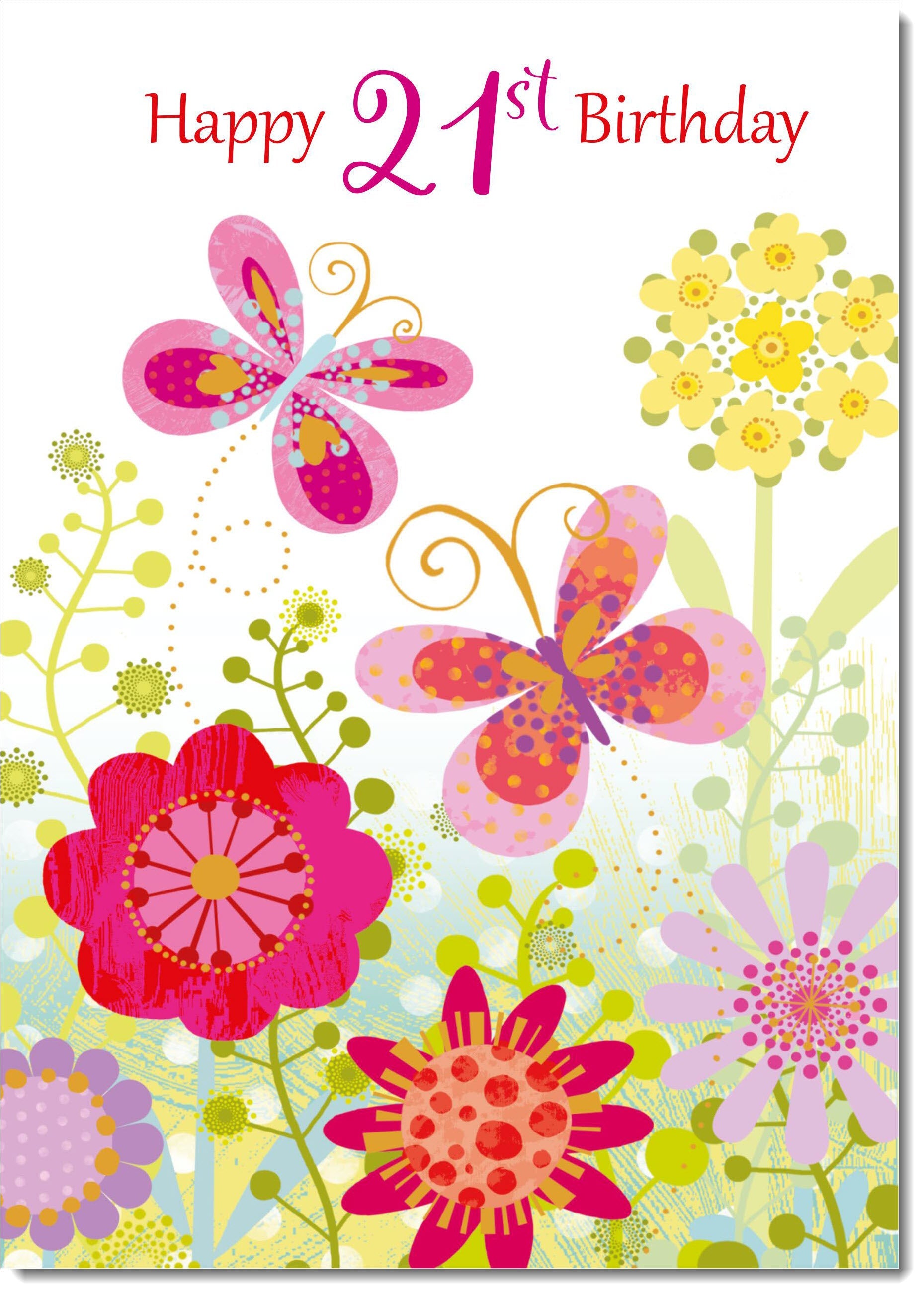 21st Birthday Card Age 21 for Her Flowers and Butterflies