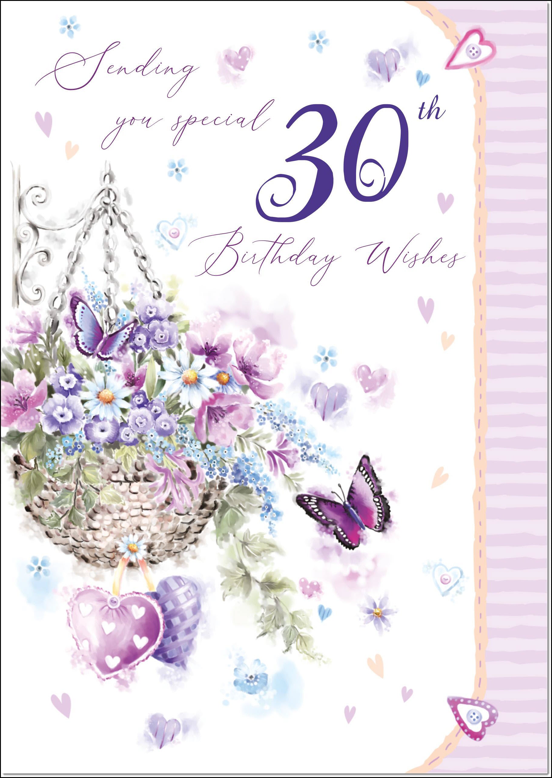 30th Birthday Card Age 30 for Her Purple Hanging Basket
