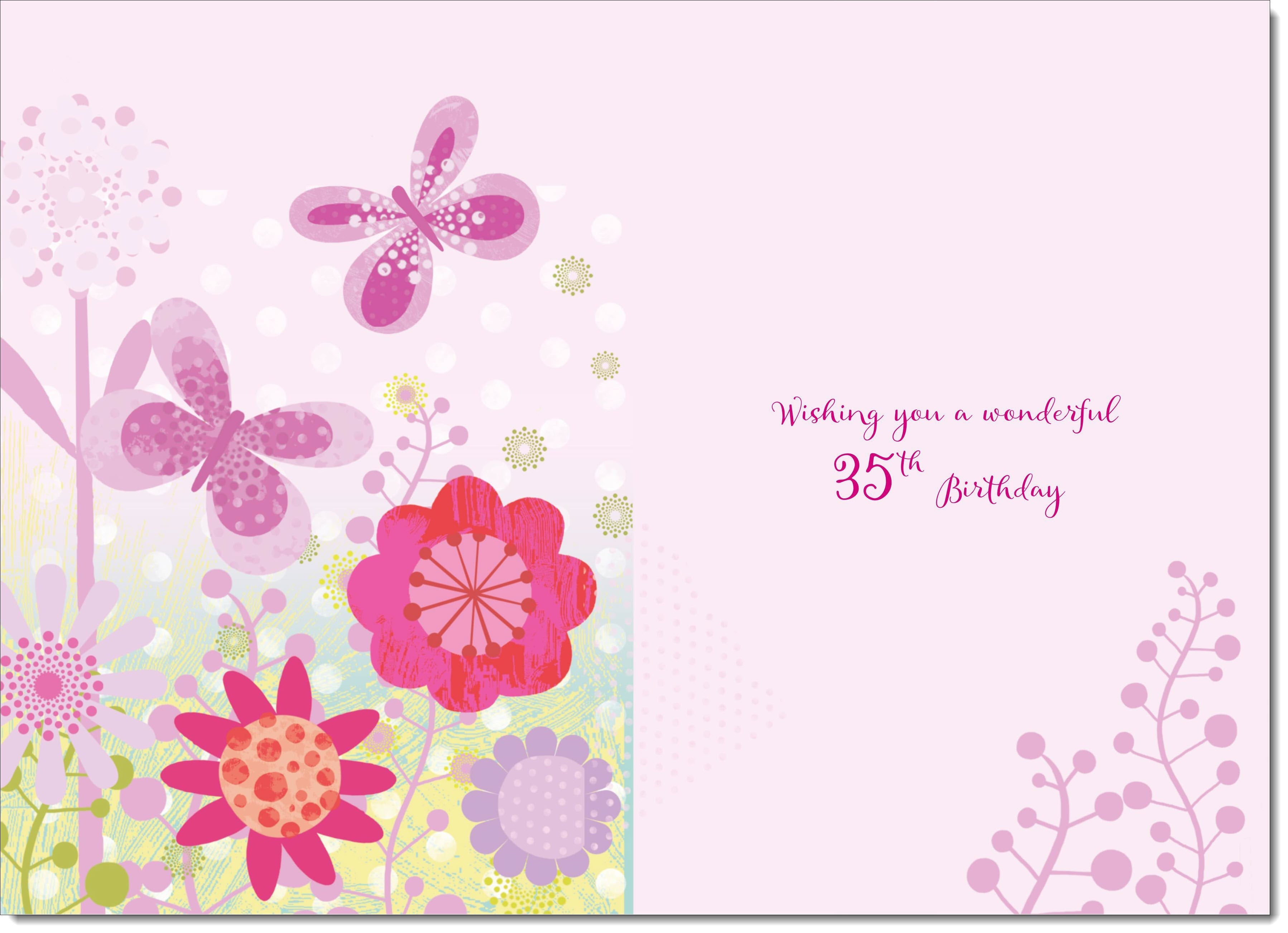 35th Birthday Card Age 35 for Her Flowers and Butterflies
