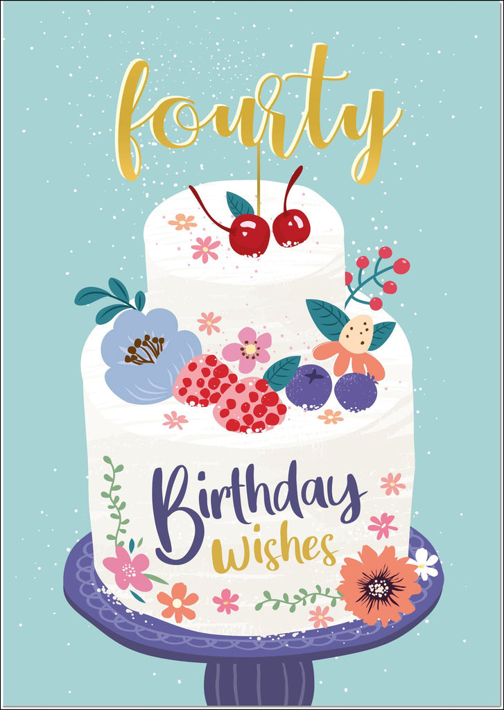 40th Birthday Card Age 40 for Her Cherry Birthday Cake and Candles