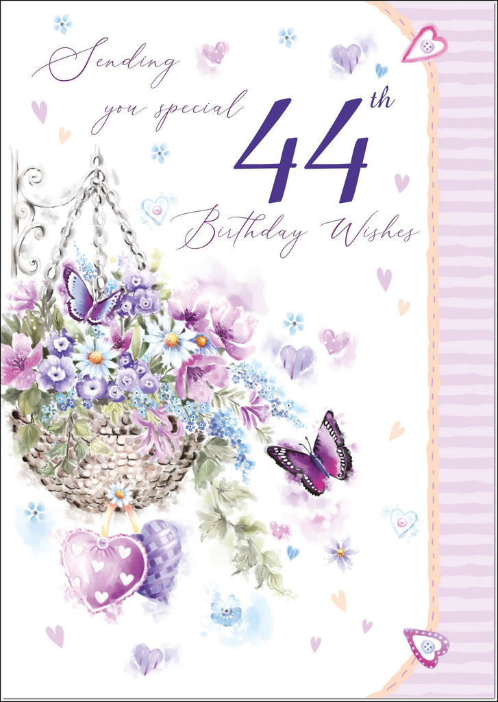 40th Birthday Card Age 40 for Her Purple Hanging Basket