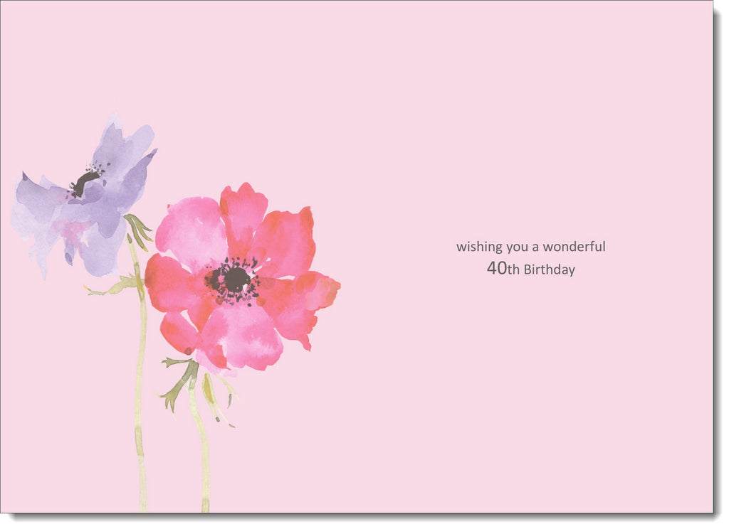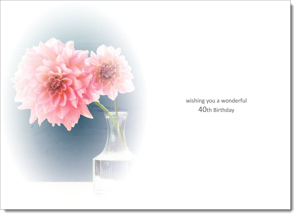 40th Birthday Card Age 40 for Her Large Pink Flowers