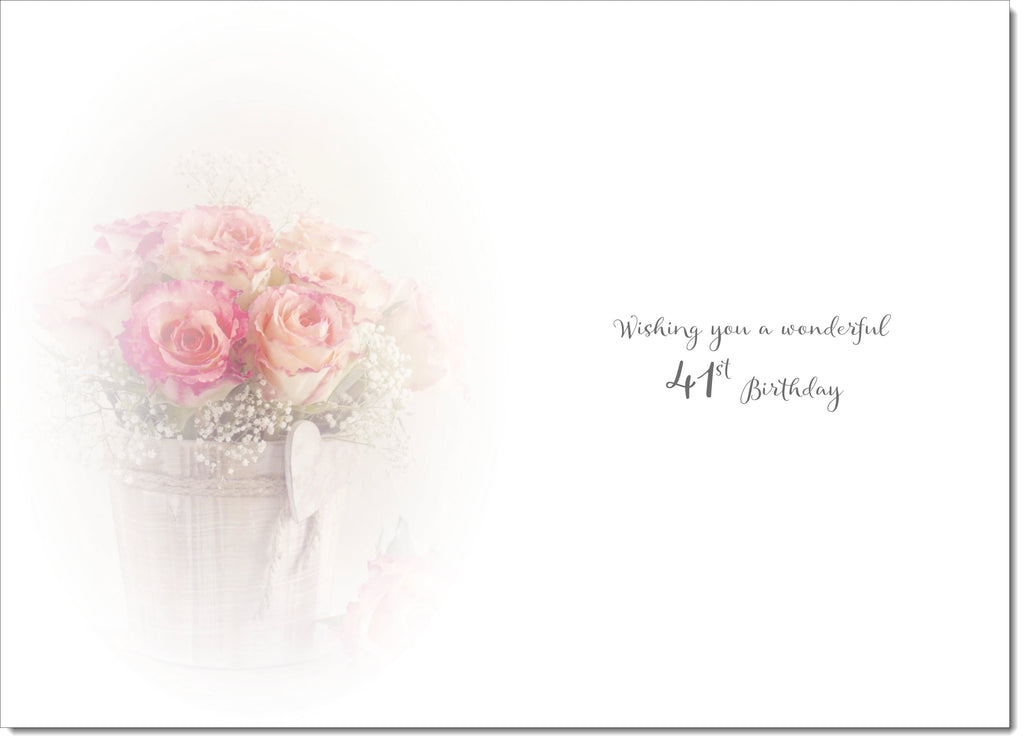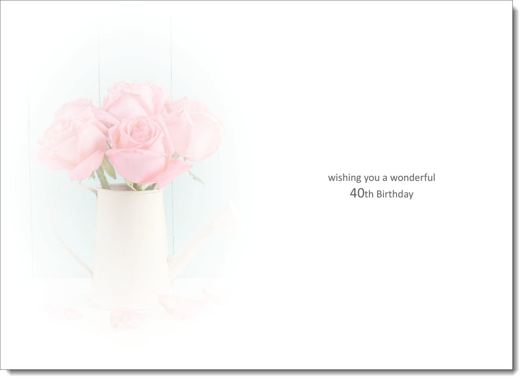 40th Birthday Card Age 40 for Her Pink Rose Bouquet