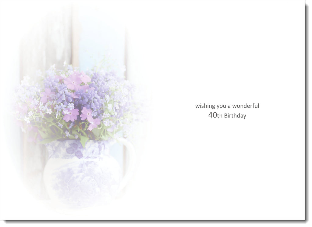 40th Birthday Card Age 40 for Her Purple Bouquet