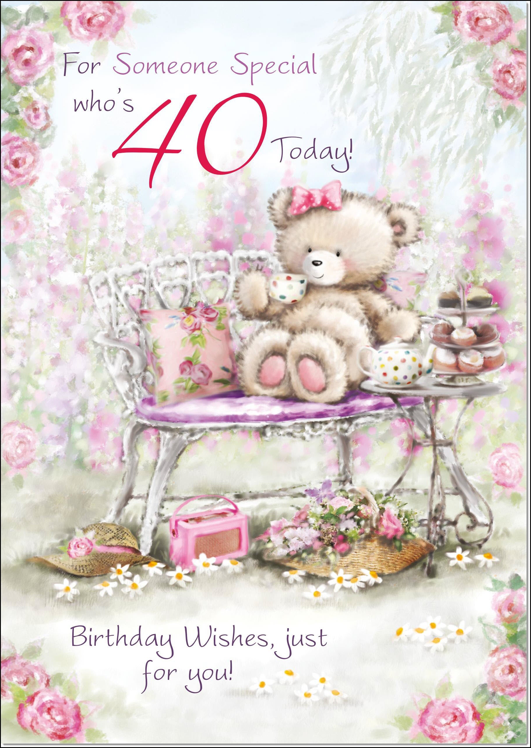 40th Birthday Card Age 40 for Her Cute Teddy's Afternoon Tea