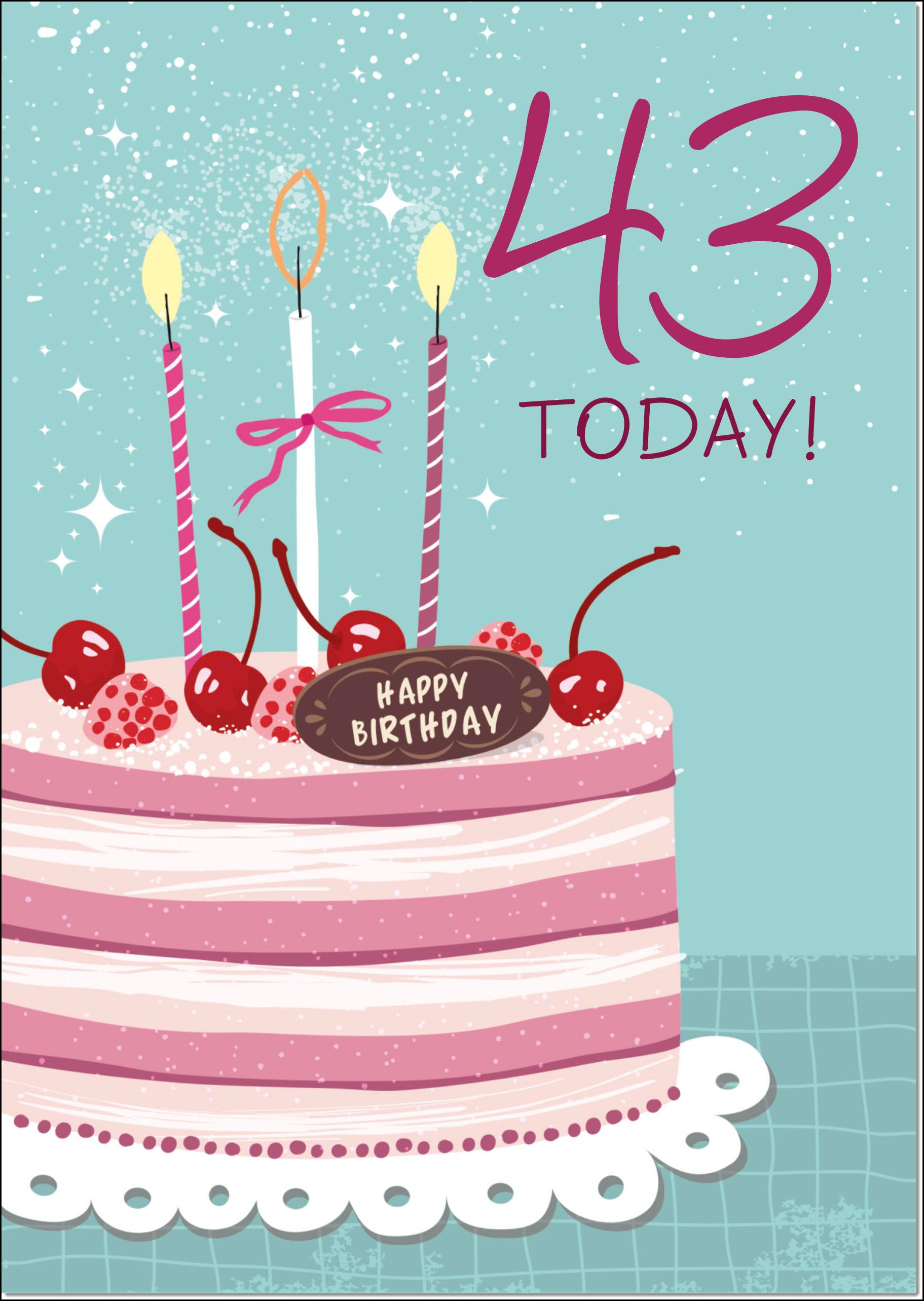 43rd Birthday Card Age 43 for Her Cherry Birthday Cake and Candles