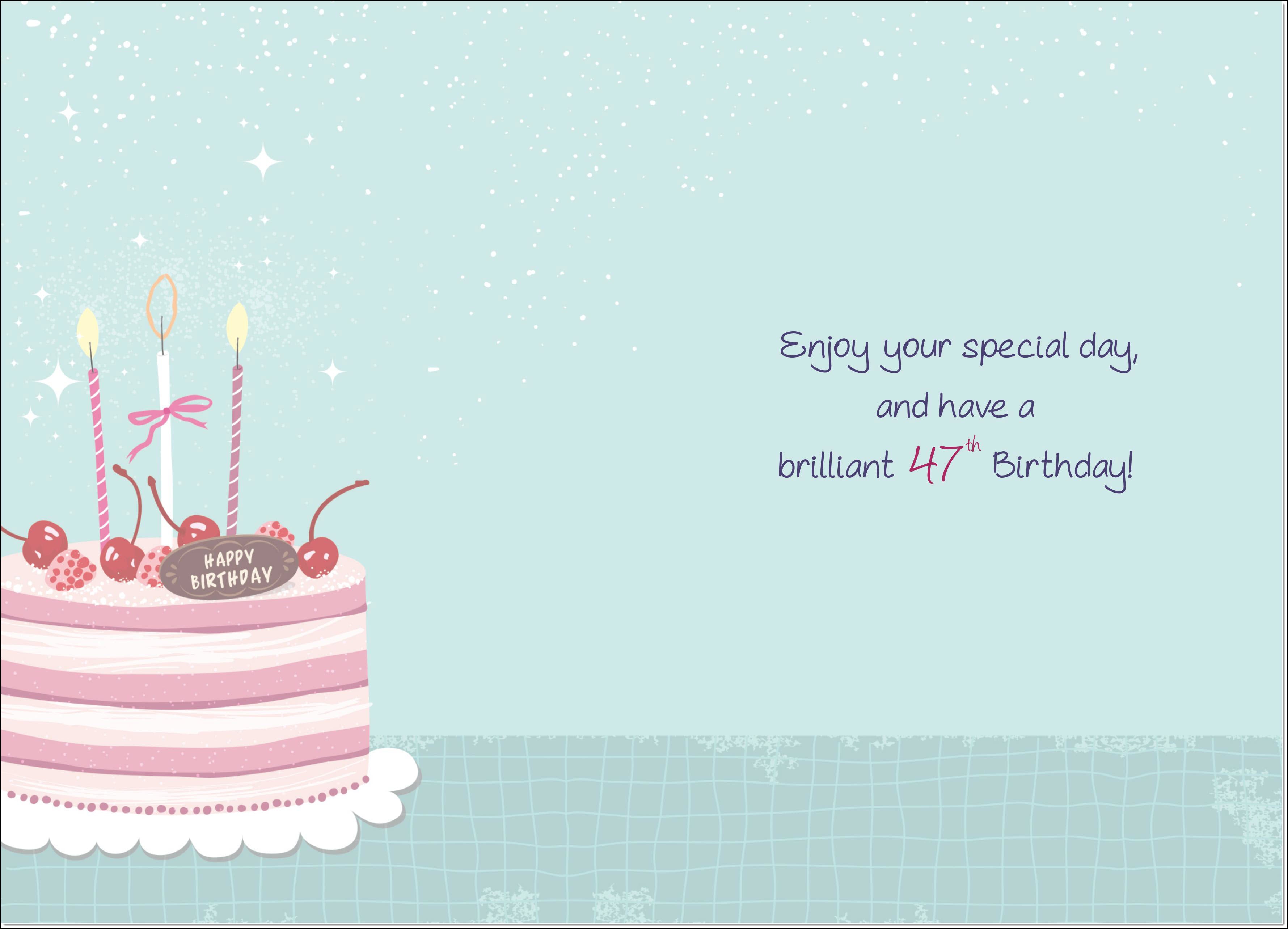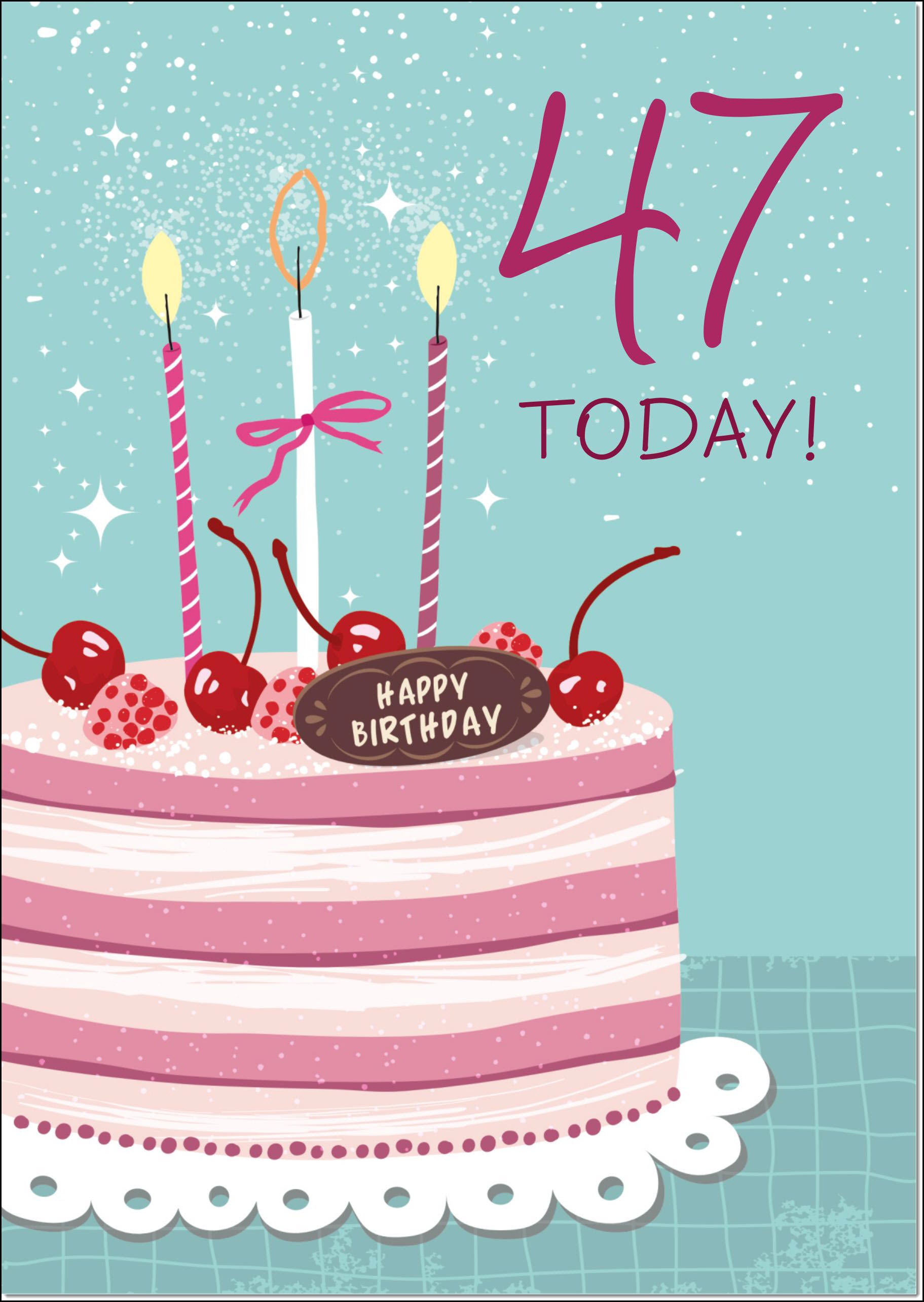 47th Birthday Card Age 47 for Her Cherry Birthday Cake and Candles