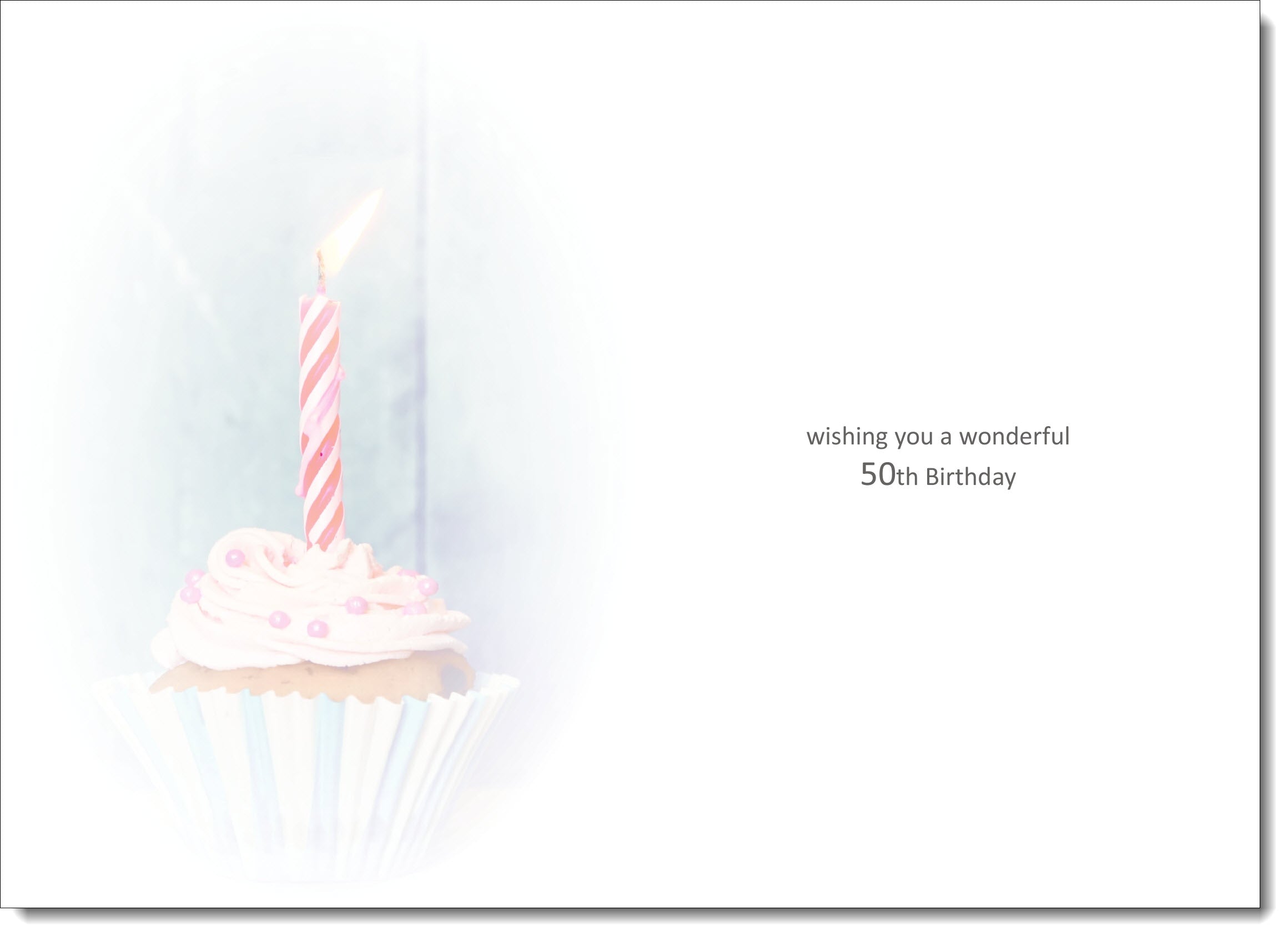 50th Birthday Card Age 50 for Her Cupcake and Pink Candle