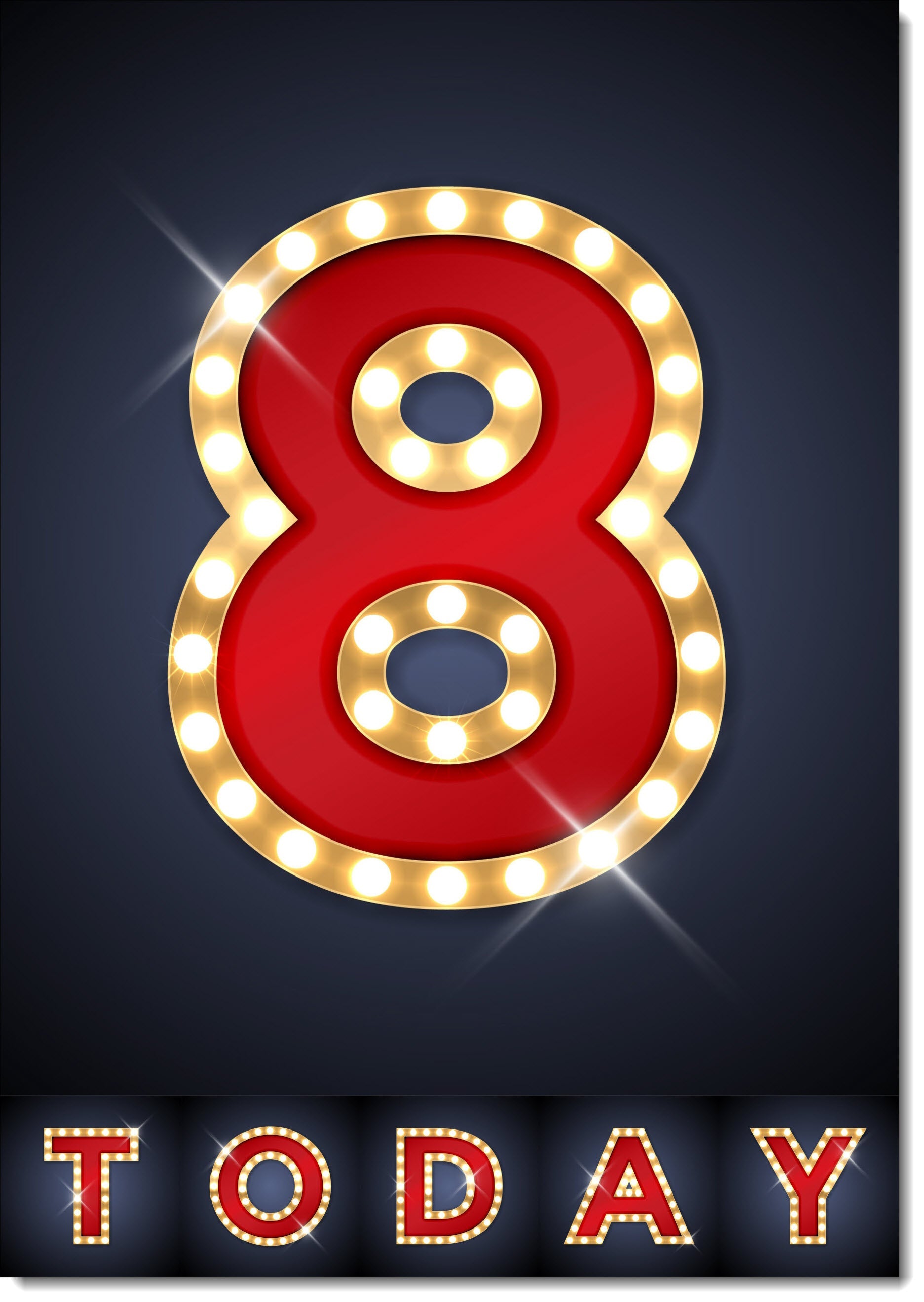 8th Birthday Card Age 8 for Boy Retro Lightbulbs