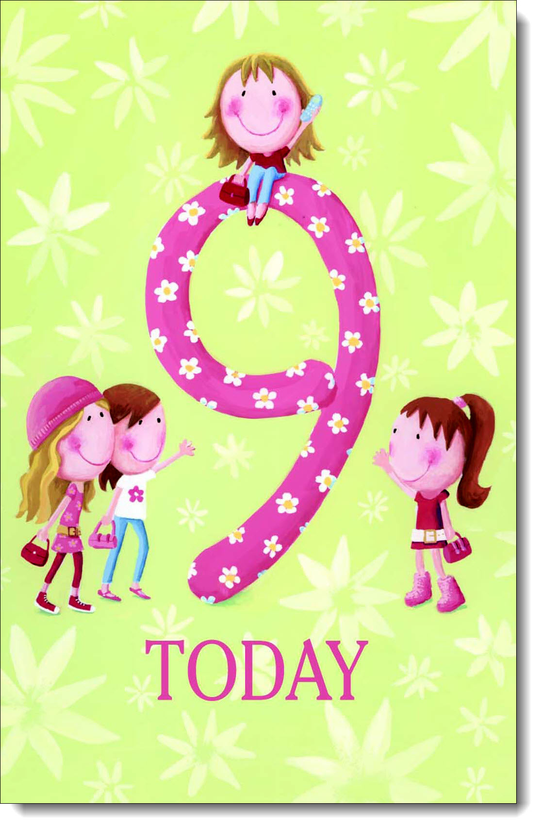 9th Birthday Card Age 9 for Girl Pastel Daisies