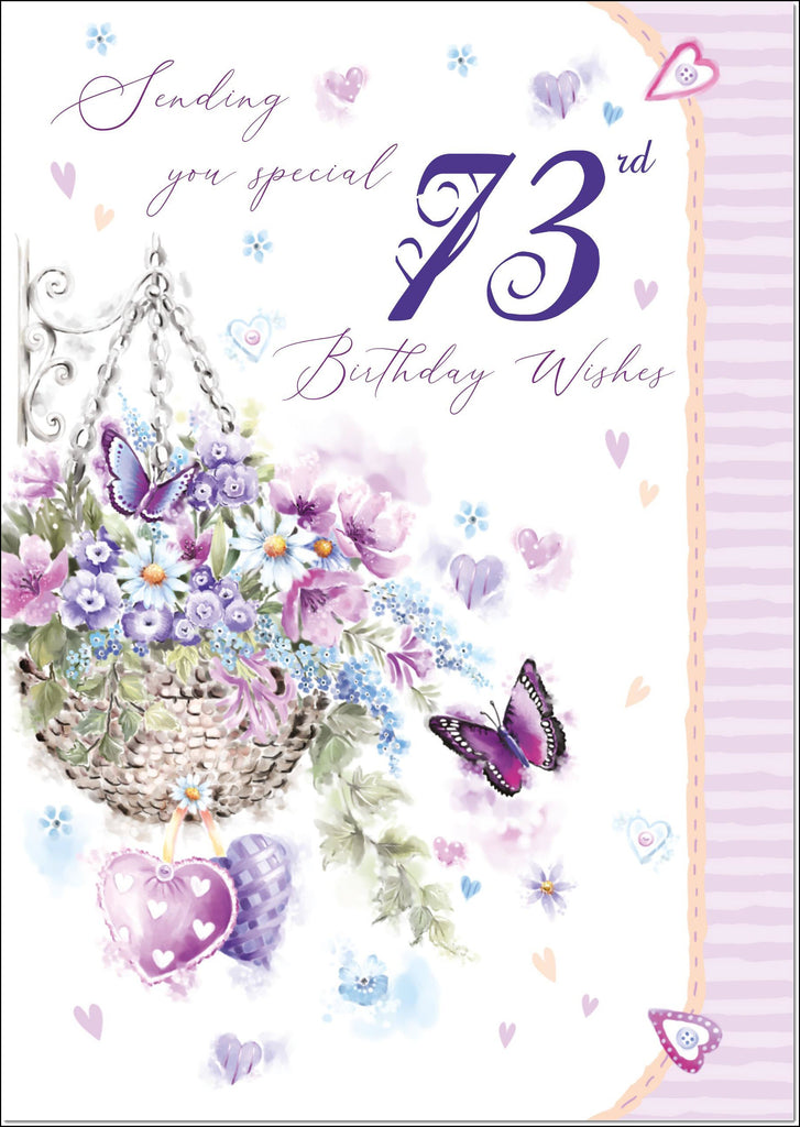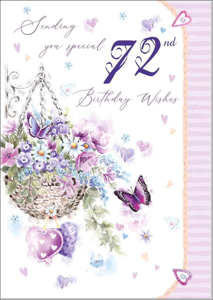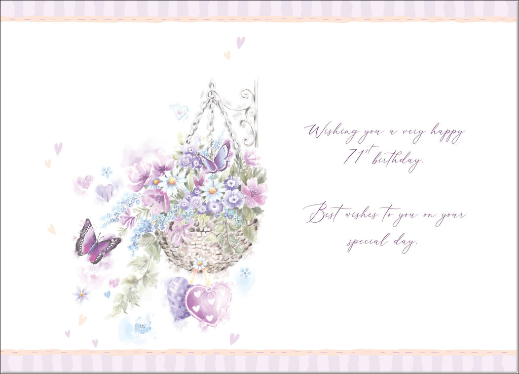 70th Birthday Card Age 70 for Her Purple Hanging Basket
