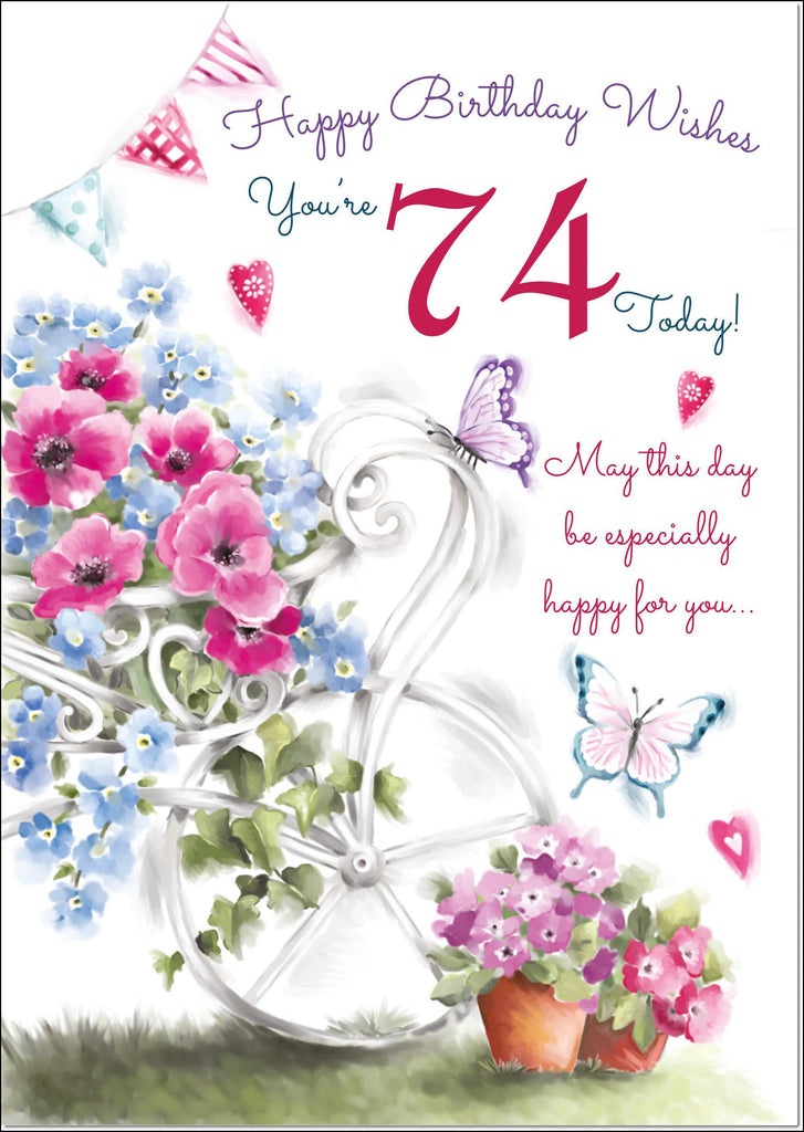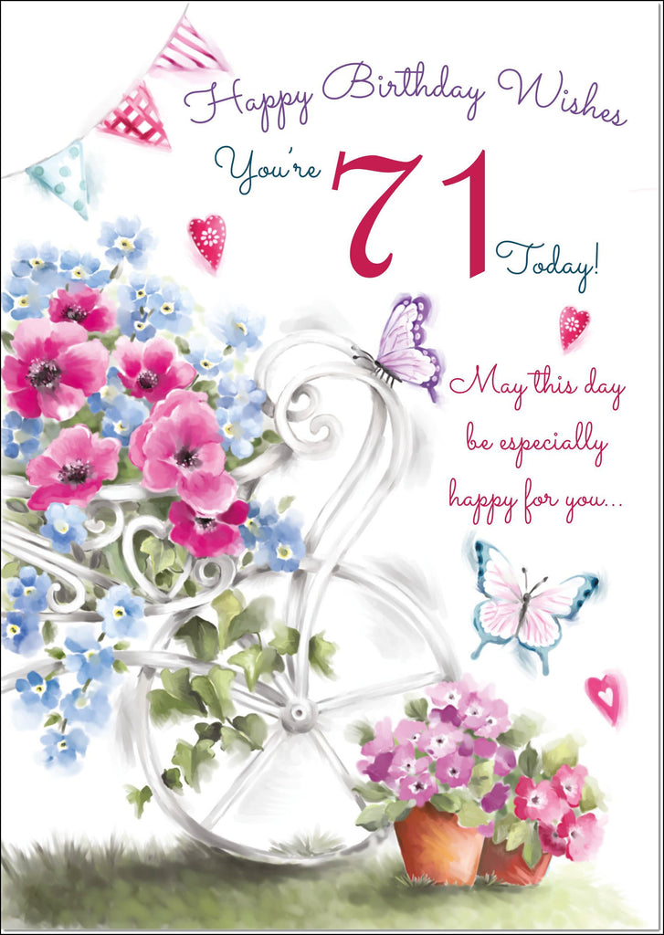 70th Birthday Card Age 70 for Her Garden Wheelbarrow Bouquet
