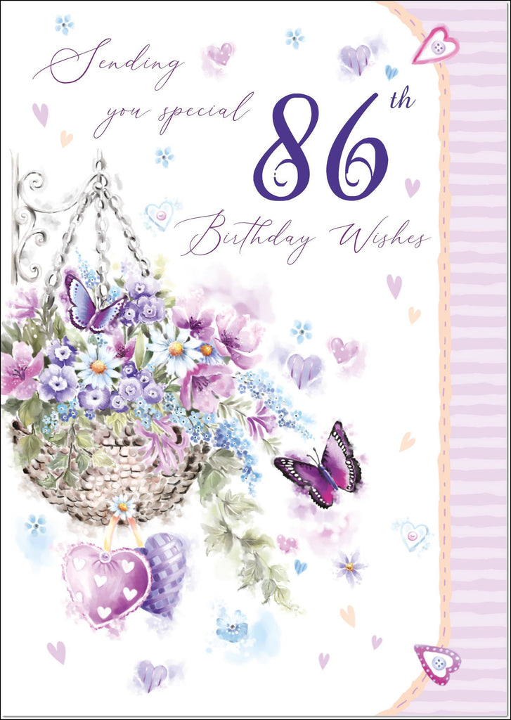 86th Birthday Card Age 86 for Her Flowers and Butterflies