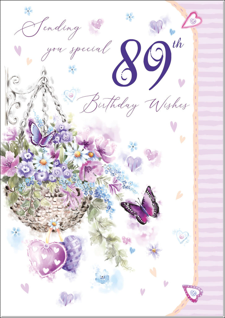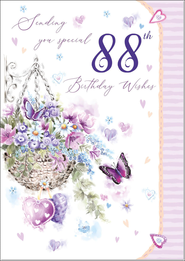 88th Birthday Card Age 88 for Her Purple Hanging Basket