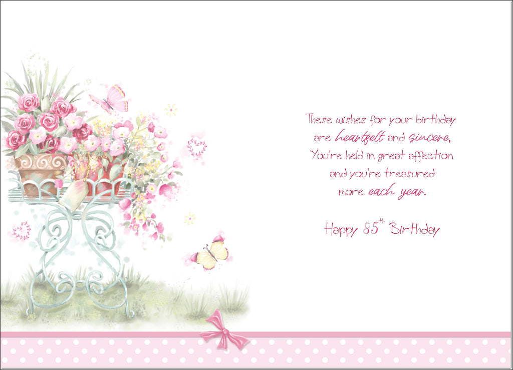 85th Birthday Card Age 85 for Her Pink Floral Plant Pots