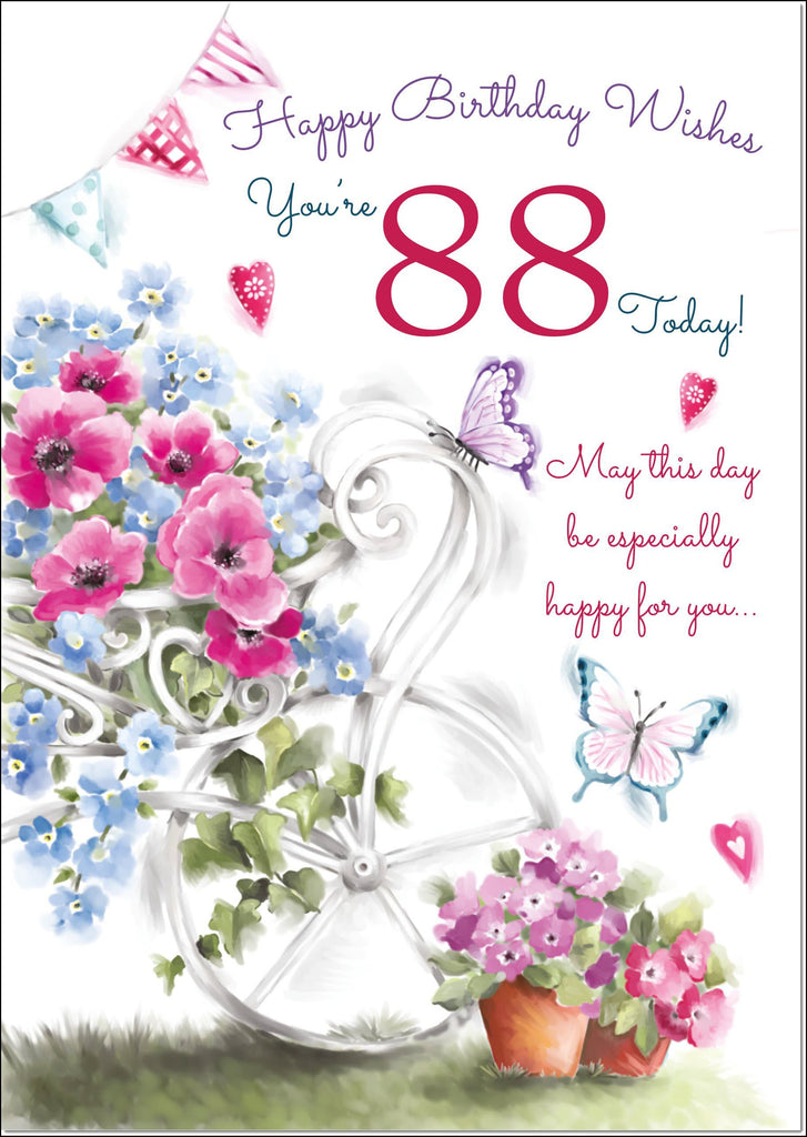 88th Birthday Card Age 88 for Her Garden Wheelbarrow Bouquet