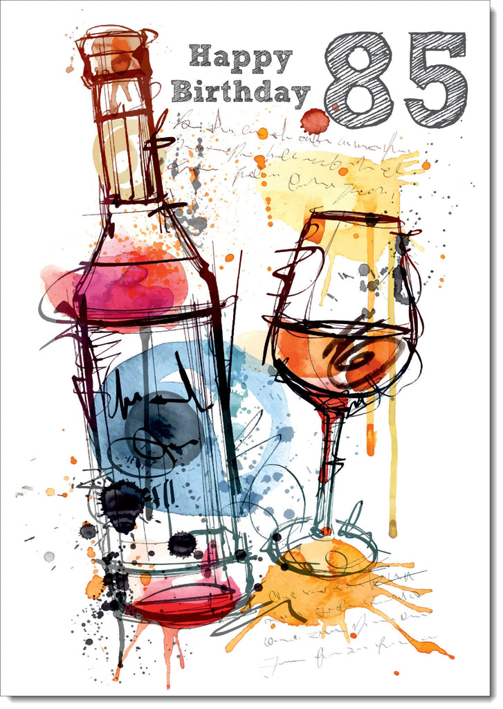 85th Birthday Card Age 85 for Him Wine Bottle Abstract Watercolour