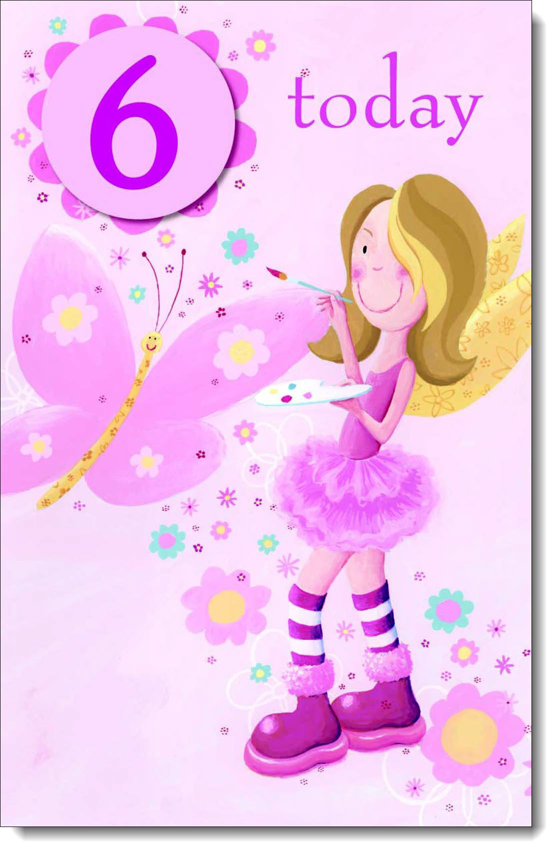 6th Birthday Card Age 6 for Girl Butterfly Fairy