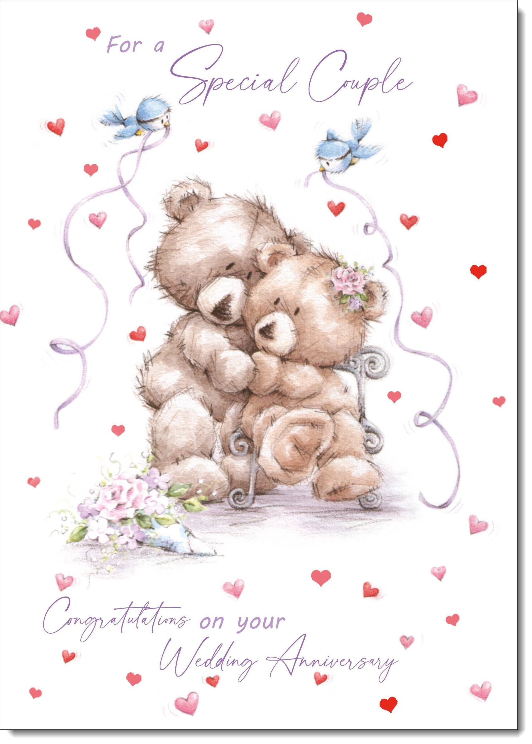 Your Wedding Anniversary Card Cute Teddy Couple with Ribbons