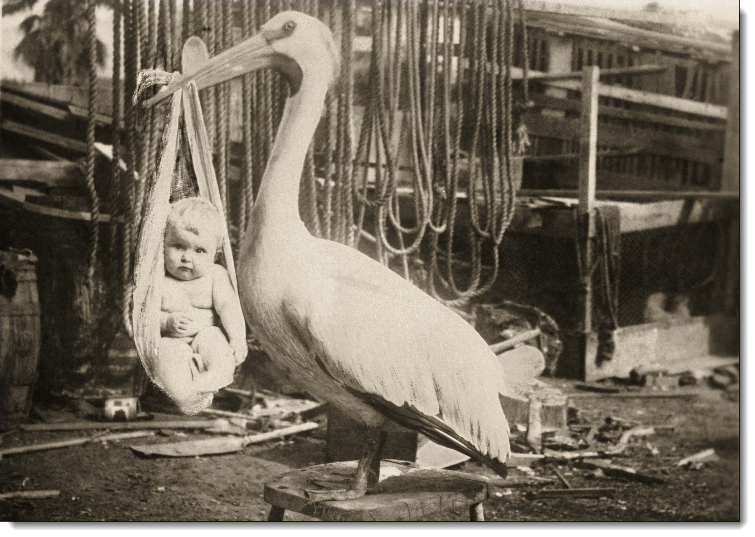 Vintage Birthday Card Baby and Stork