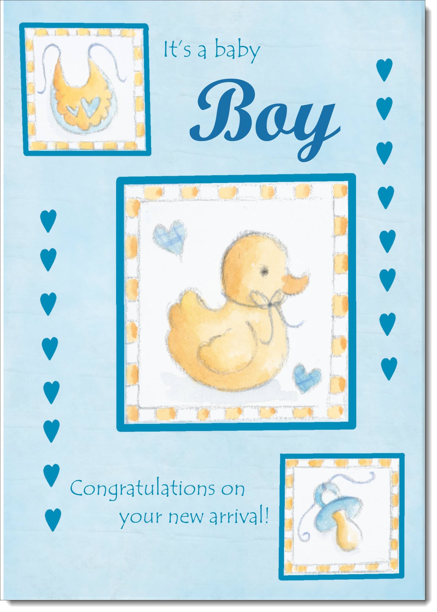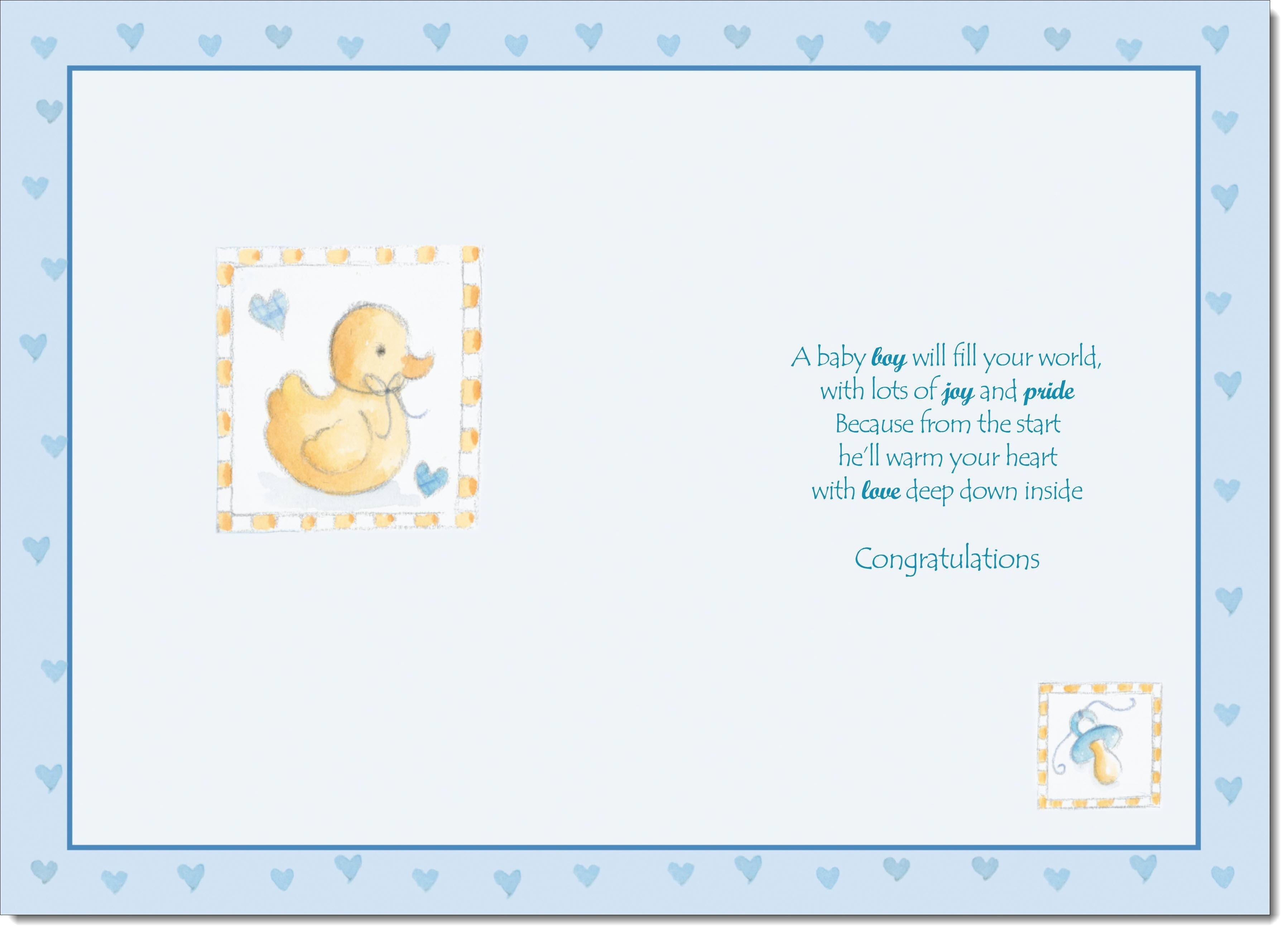 New Baby Boy Birth Congratulations Card Duck Toy Emblem